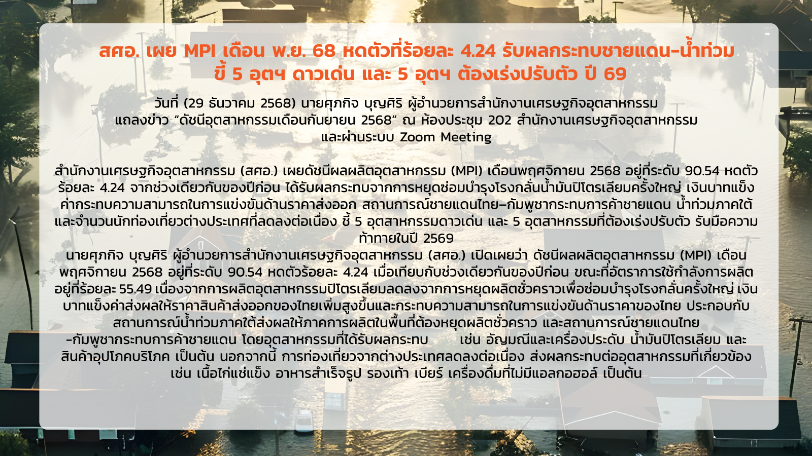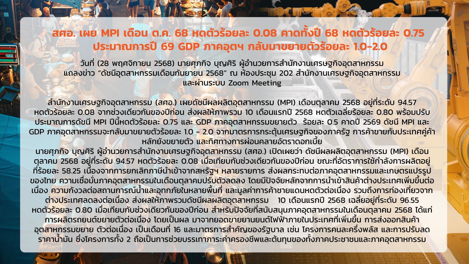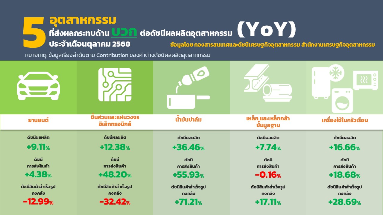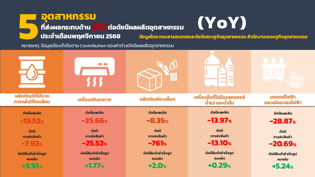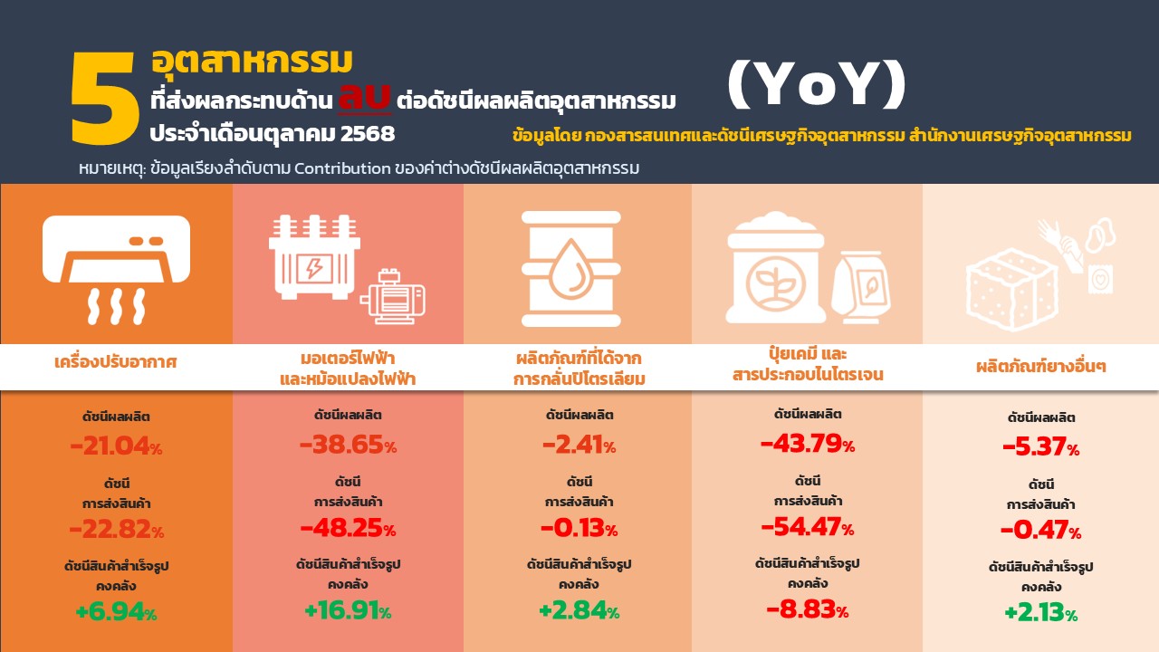 ภาพรวมดัชนีอุตสาหกรรม เดือนตุลาคม 2568 11/29/2025 10:57:58 AM ดาวน์โหลดเอกสาร 2905 ดาวน์โหลดเอกสารอื่นๆที่เกี่ยวข้อง