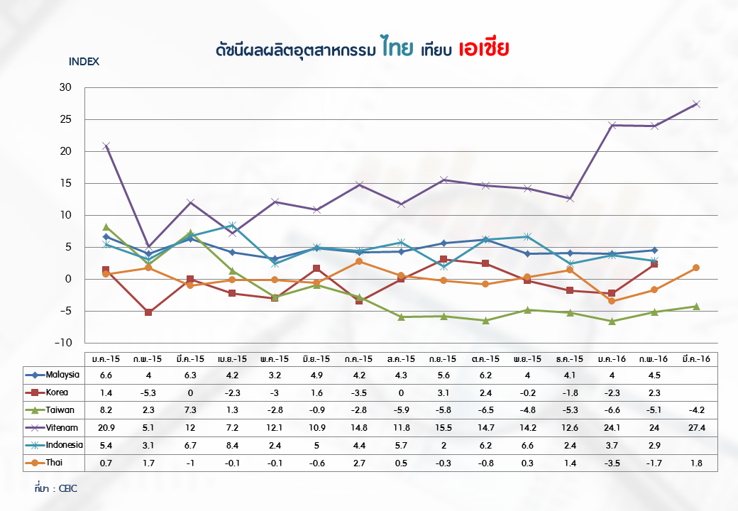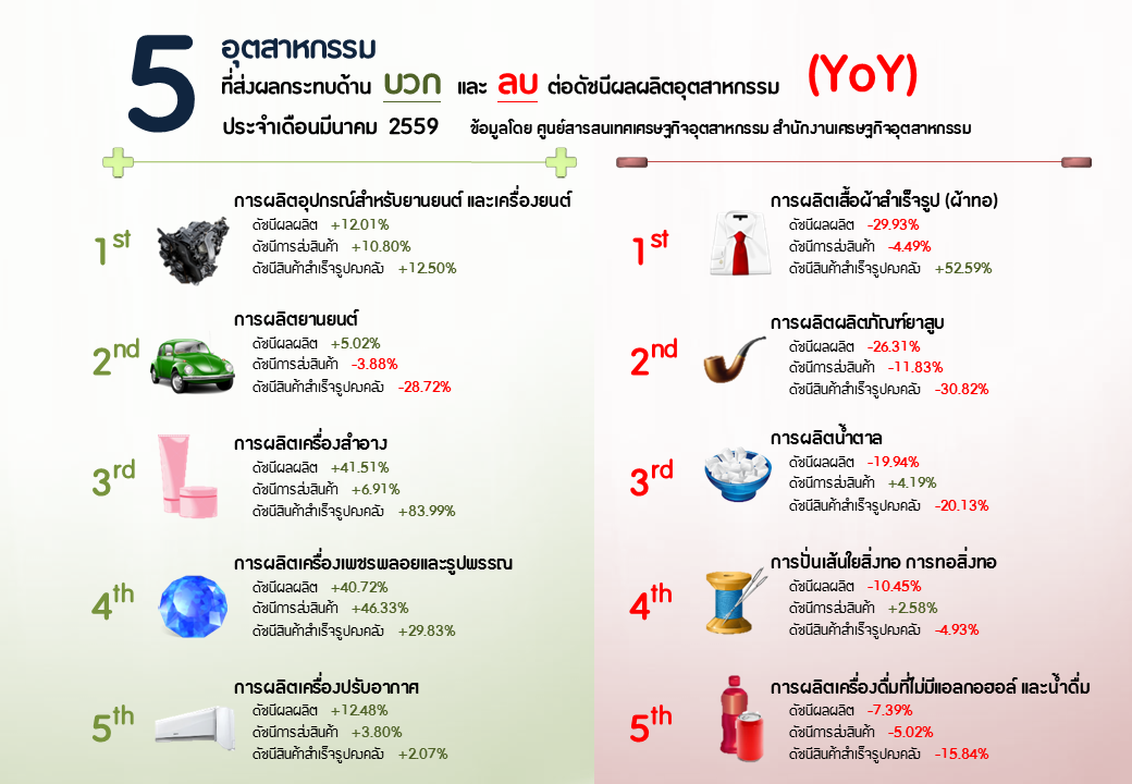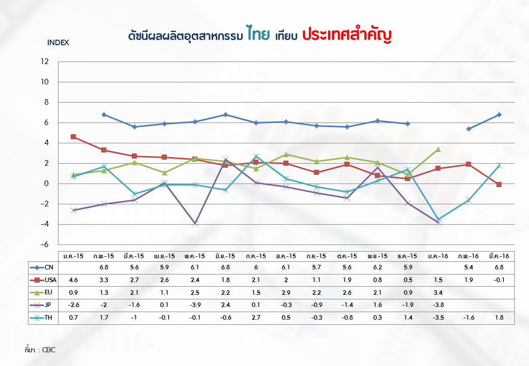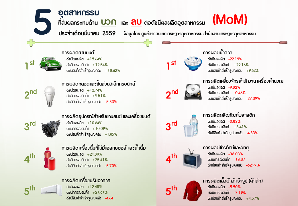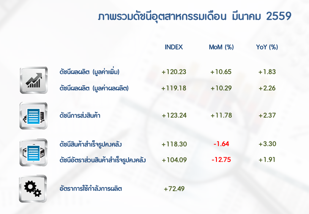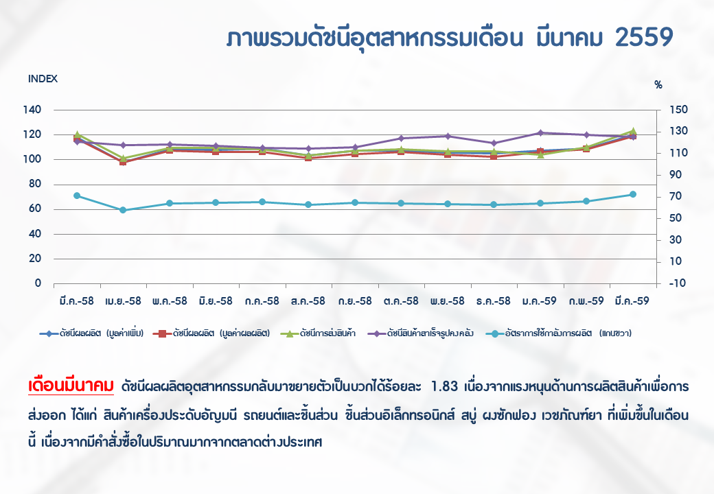 ภาพรวมดัชนีอุตสาหกรรมไทยประจำเดือนมีนาคม 2559