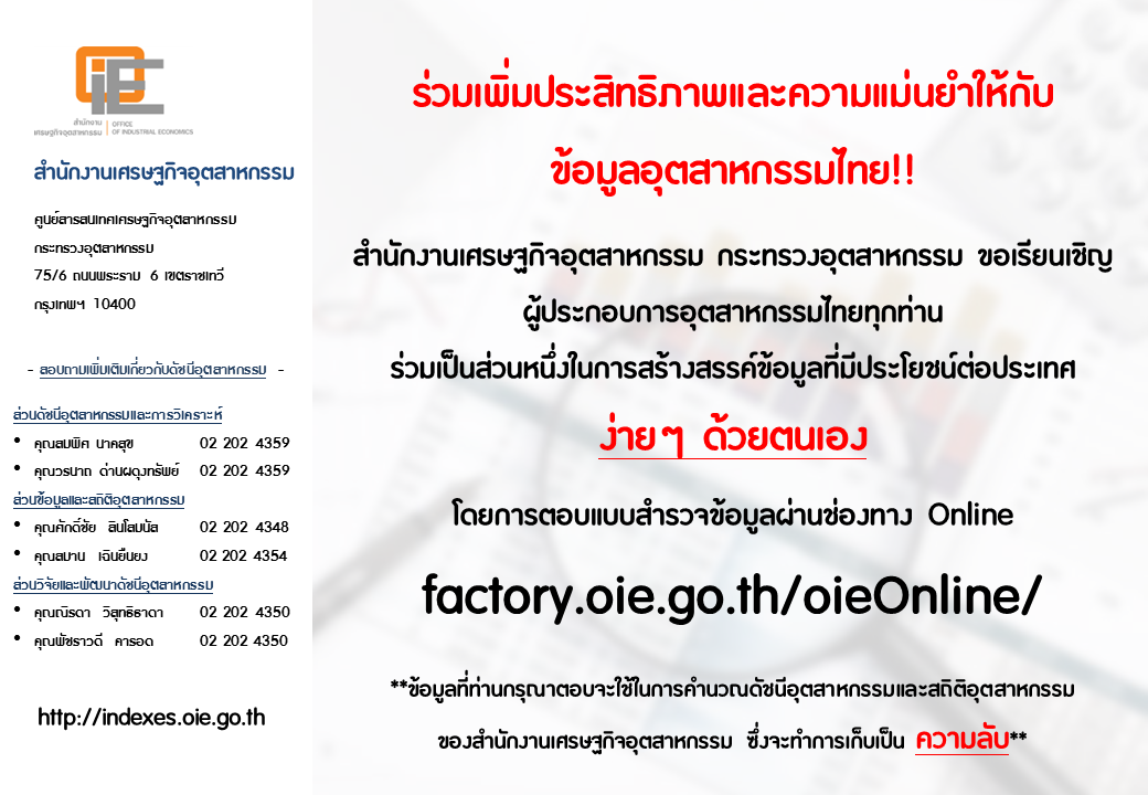 สรุปดัชนีอุตสาหกรรมรายเดือน