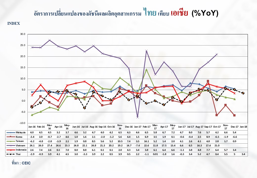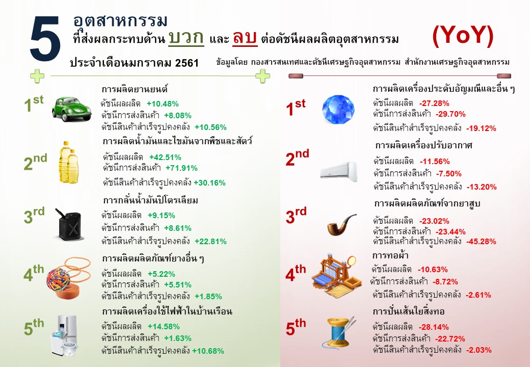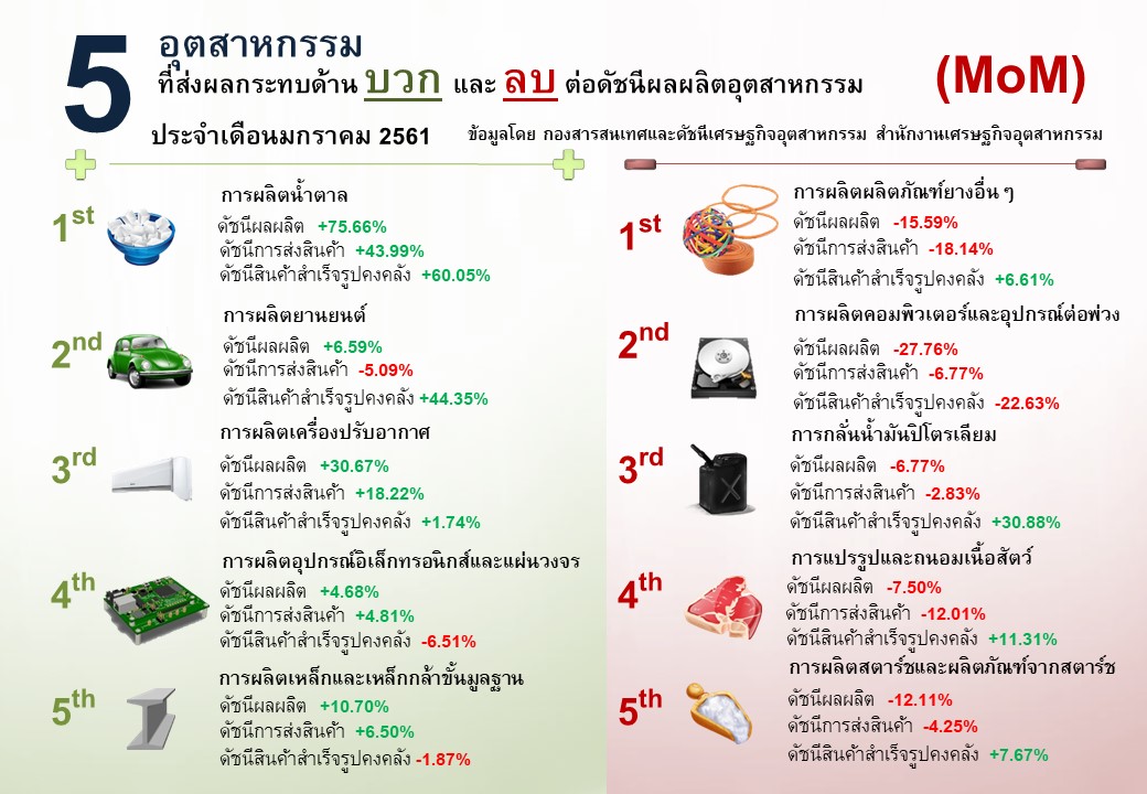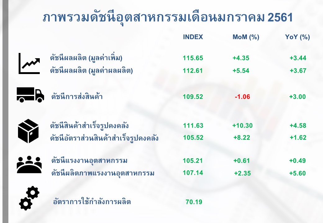 ภาพรวมดัชนีอุตสาหกรรมไทยประจำเดือนมกราคม 2561