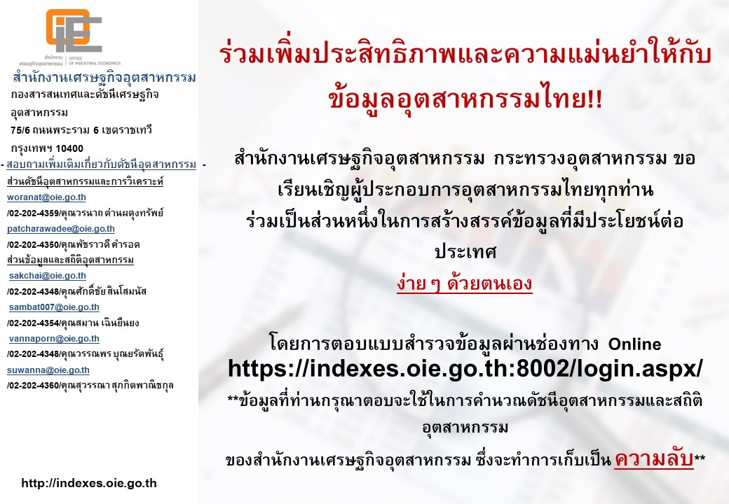 สรุปดัชนีอุตสาหกรรมรายเดือน