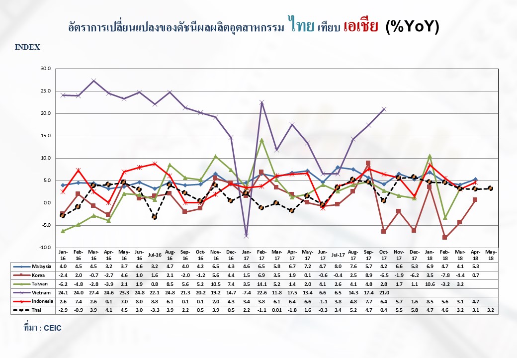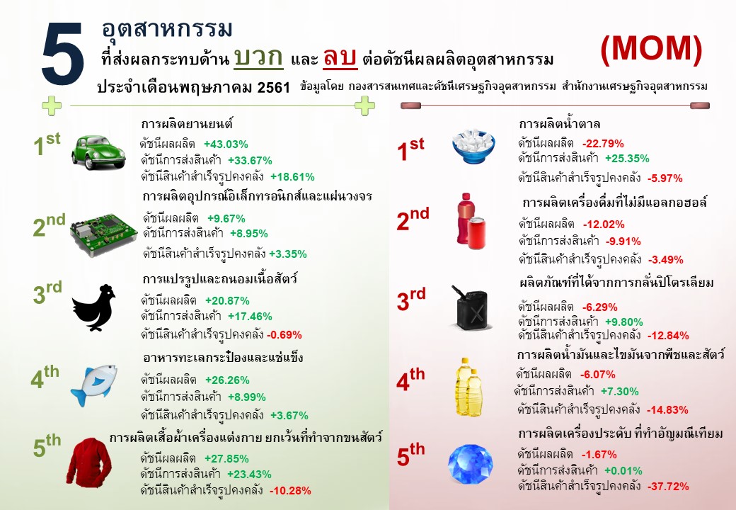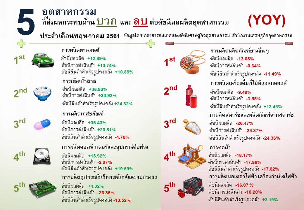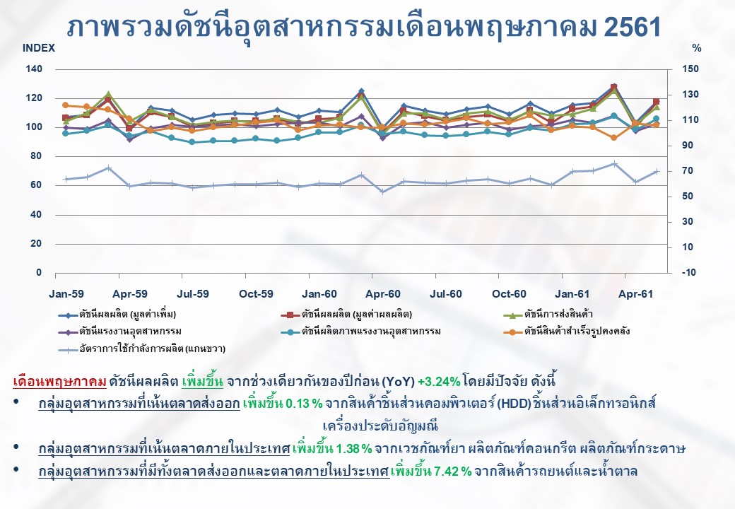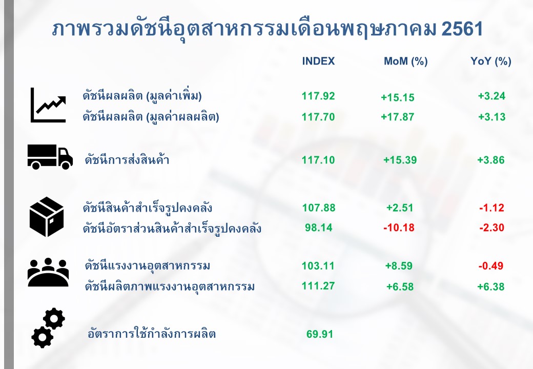 ภาพรวมดัชนีอุตสาหกรรมไทยประจำเดือนพฤษภาคม 2561