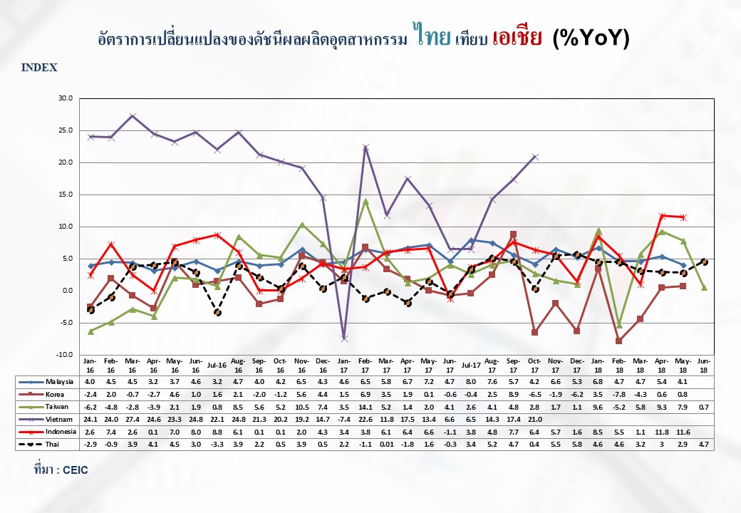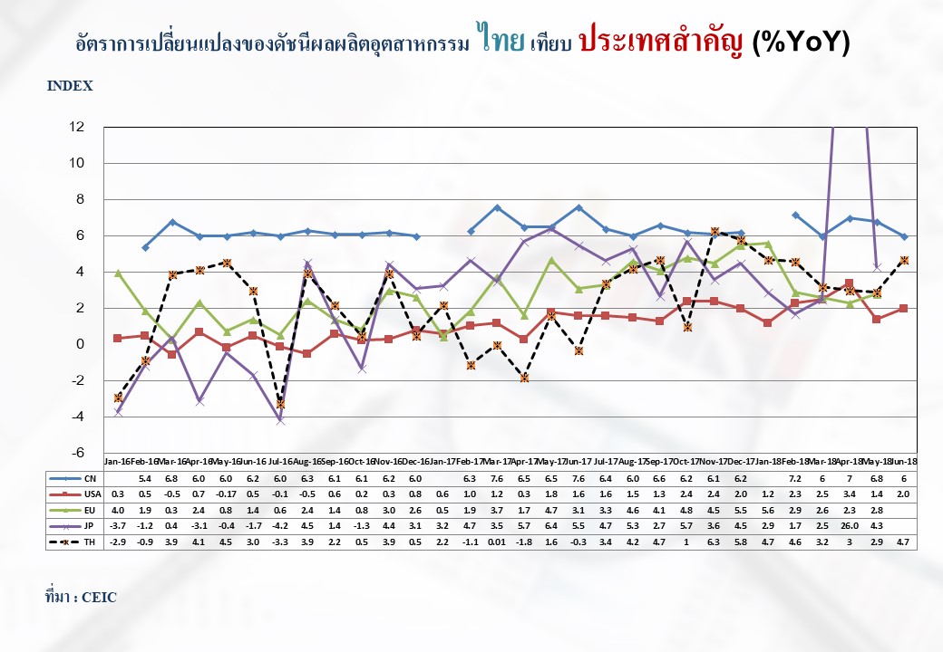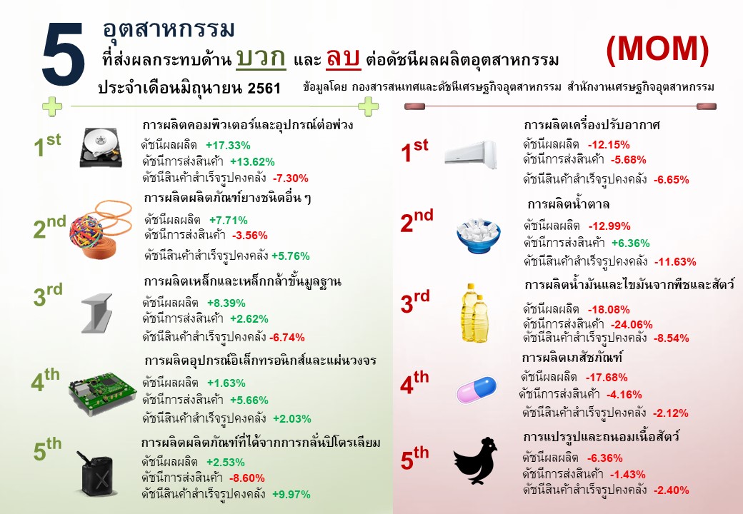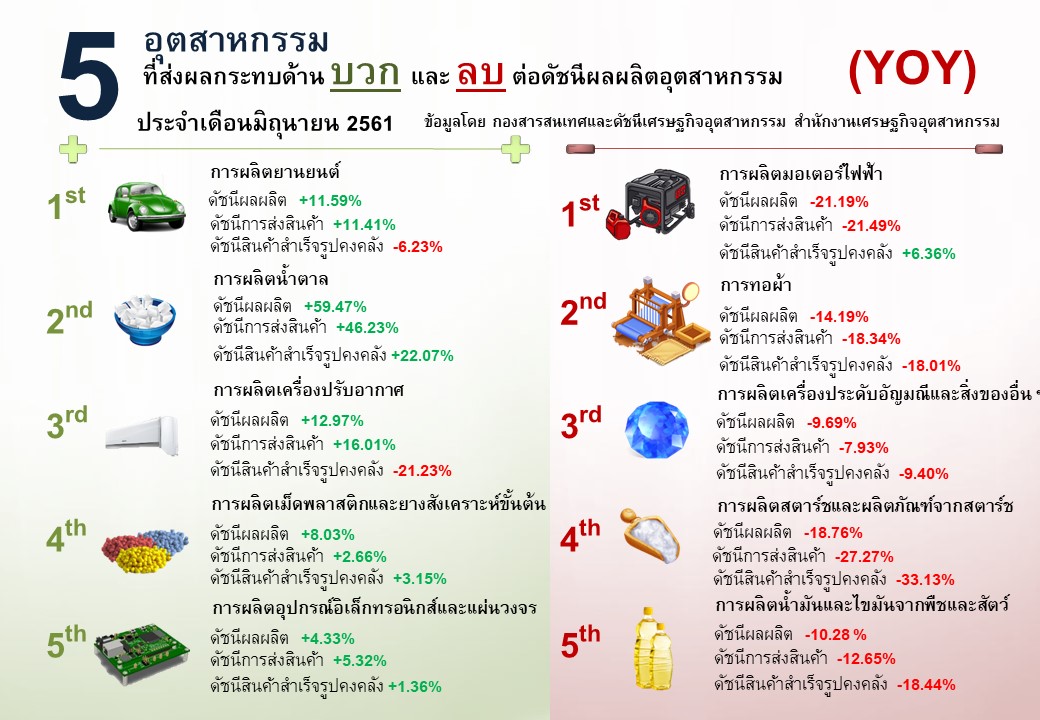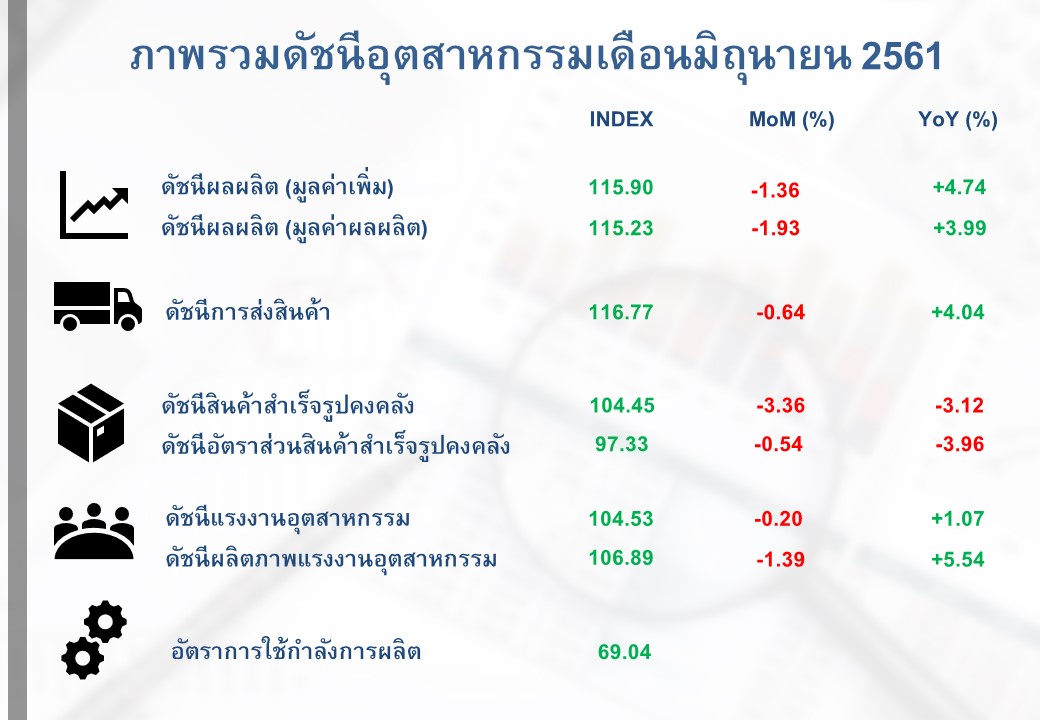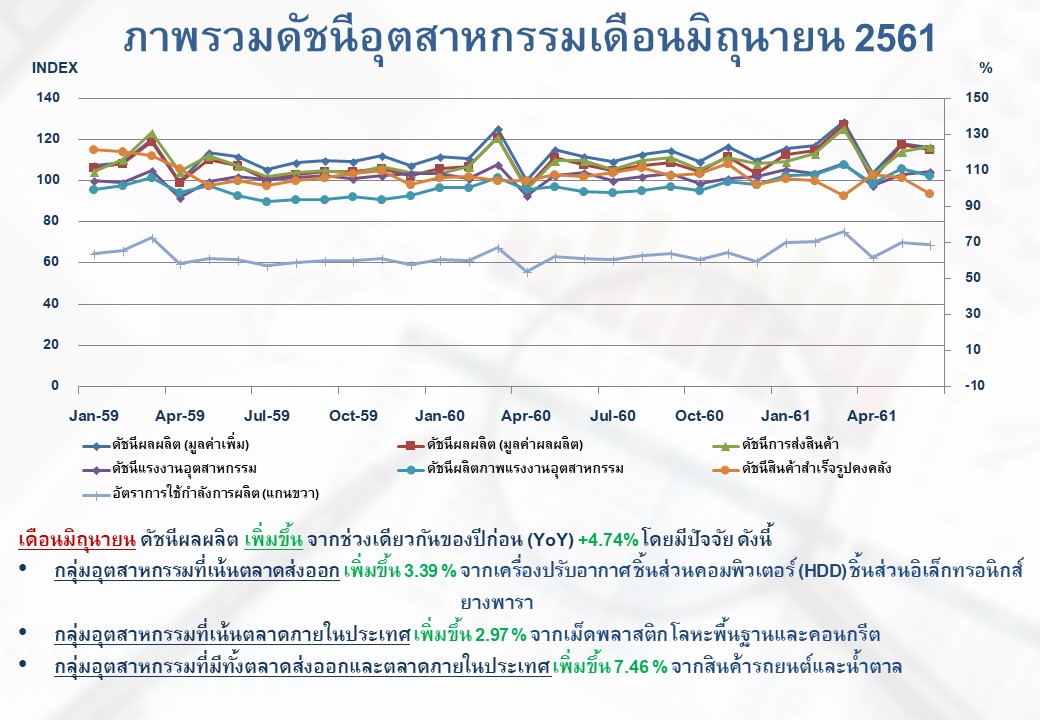 ภาพรวมดัชนีอุตสาหกรรมไทยประจำเดือนมิถุนายน 2561