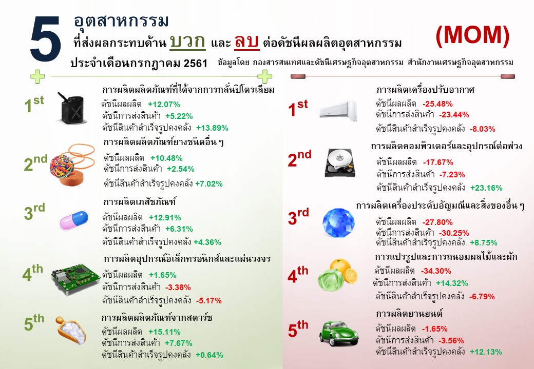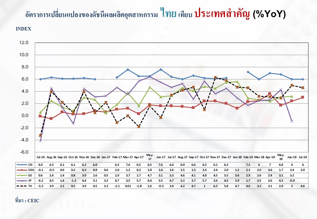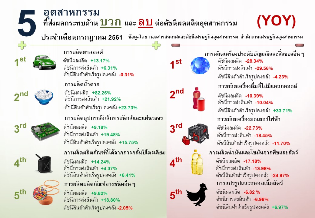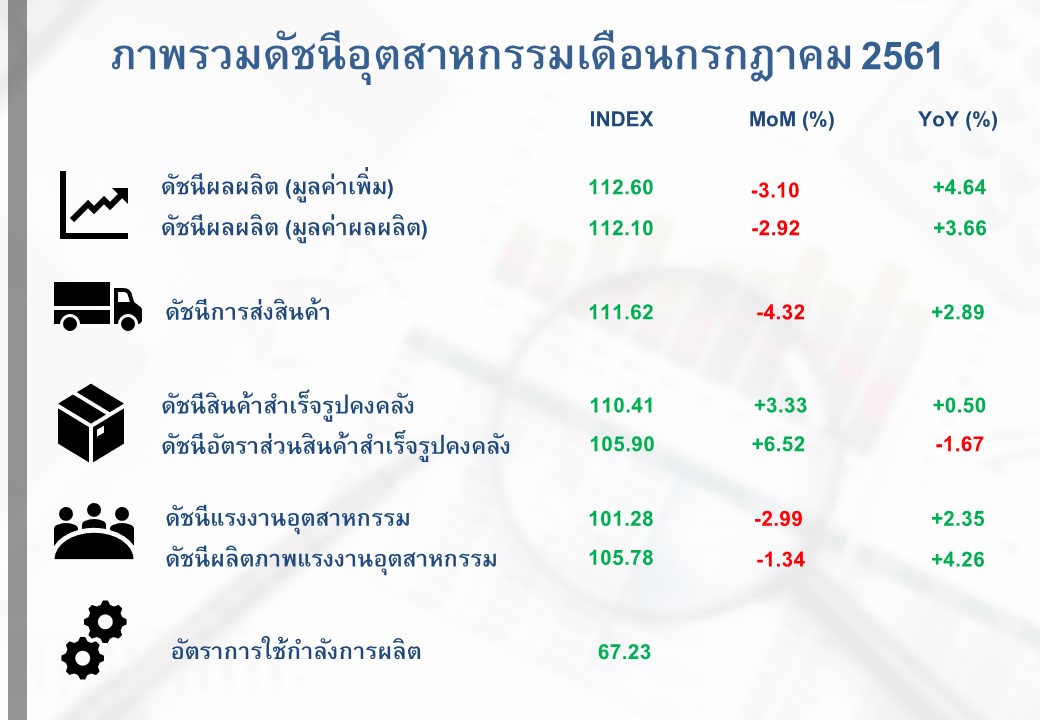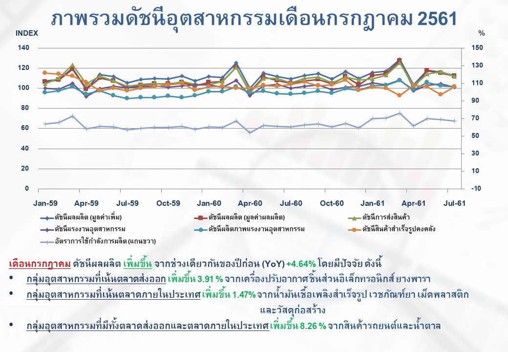 ภาพรวมดัชนีอุตสาหกรรมไทยประจำเดือนกรกฎาคม 2561