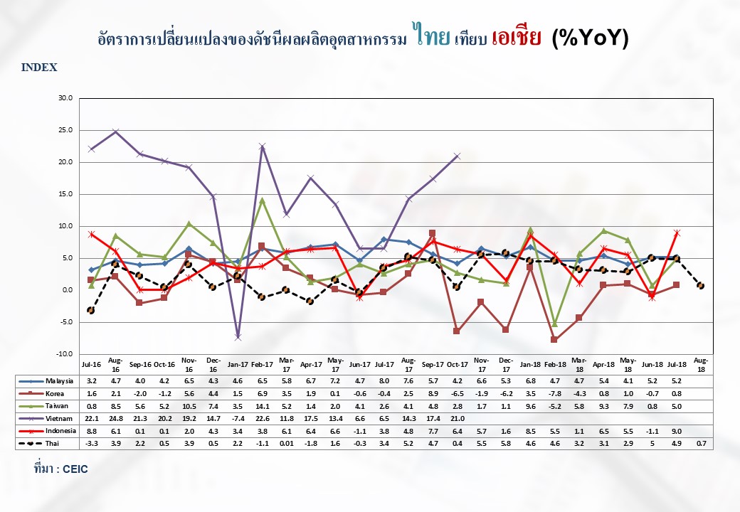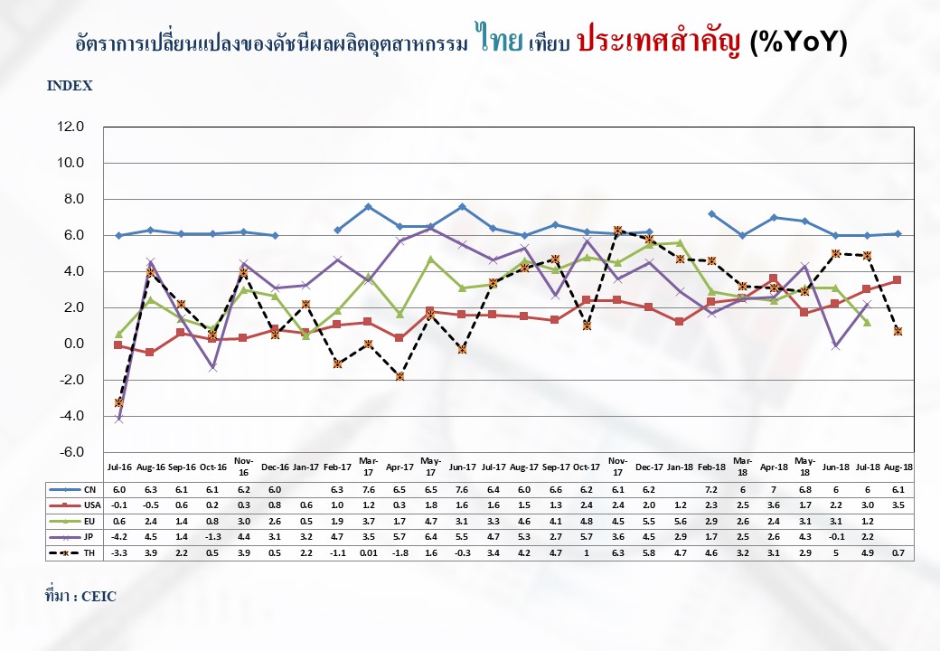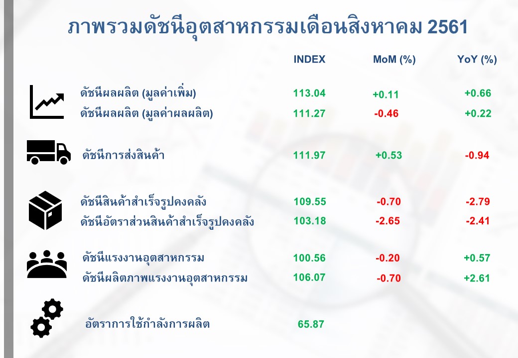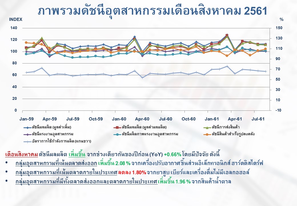 ภาพรวมดัชนีอุตสาหกรรมไทยประจำเดือนสิงหาคม 2561