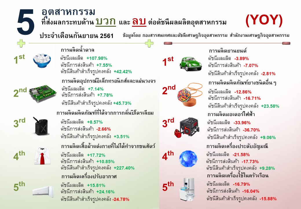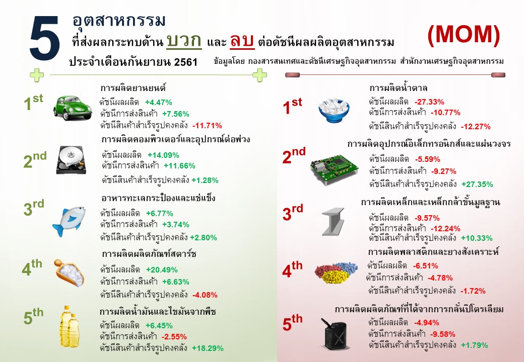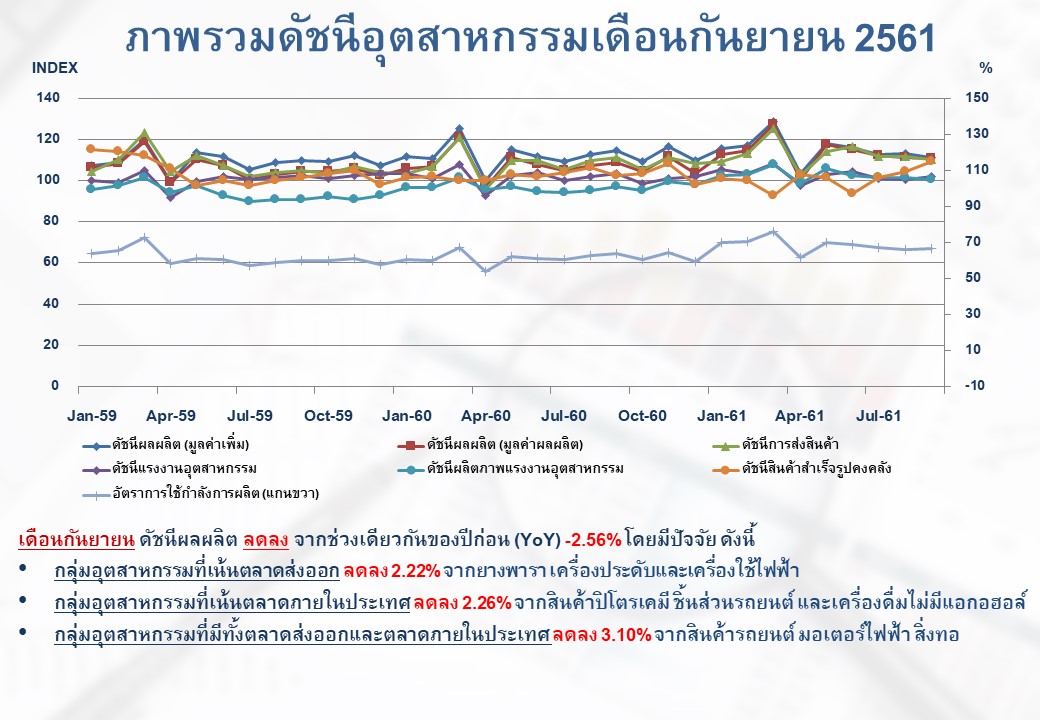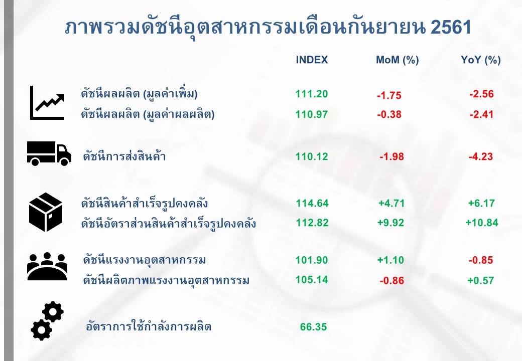 ภาพรวมดัชนีอุตสาหกรรมไทยประจำเดือนกันยายน 2561
