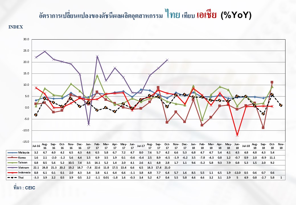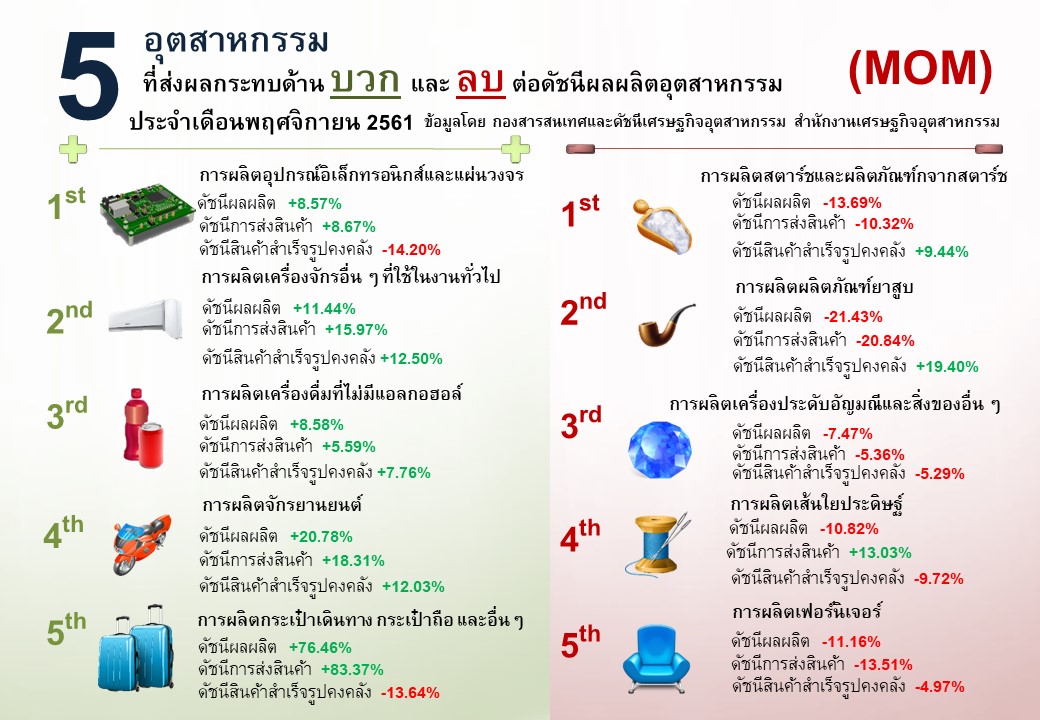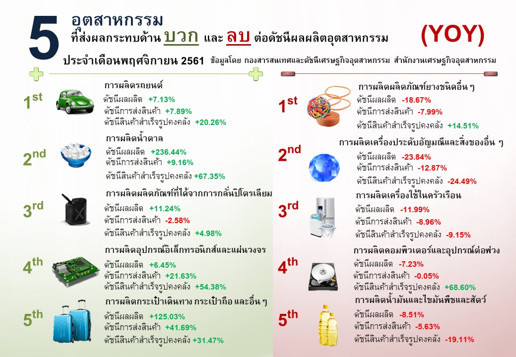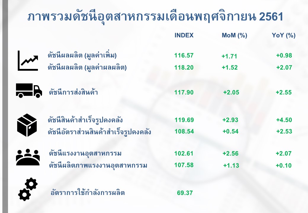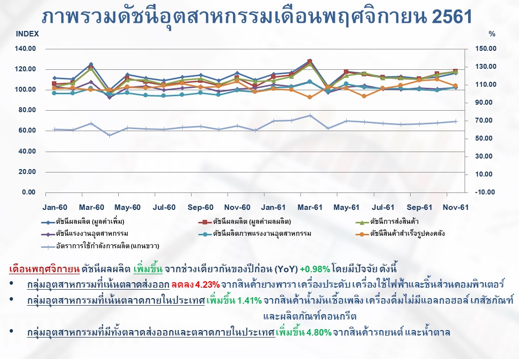 ภาพรวมดัชนีอุตสาหกรรมไทยประจำเดือนพฤศจิกายน 2561