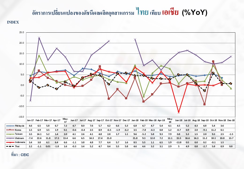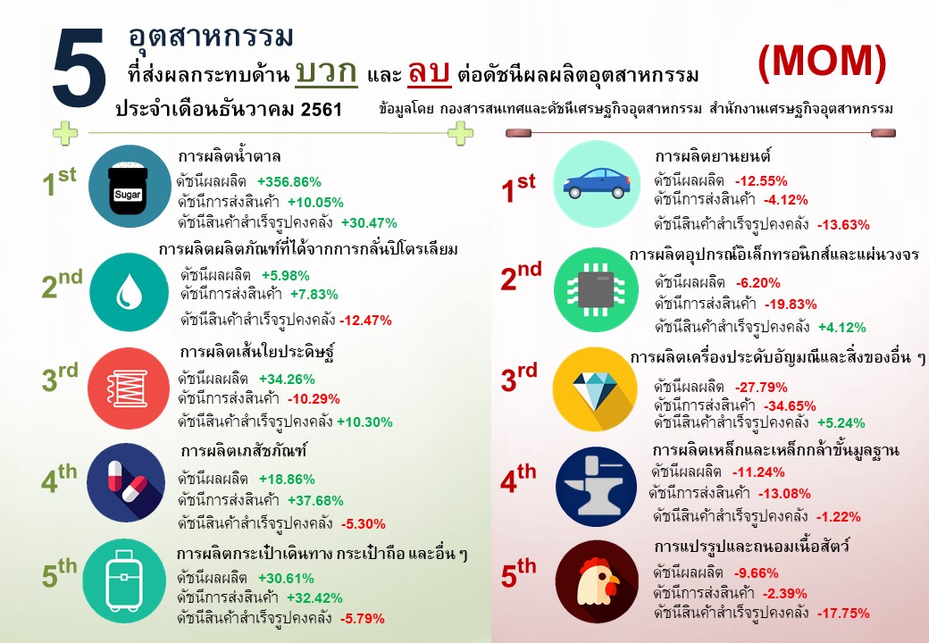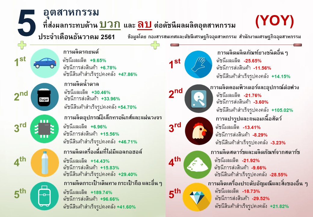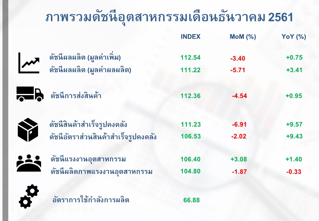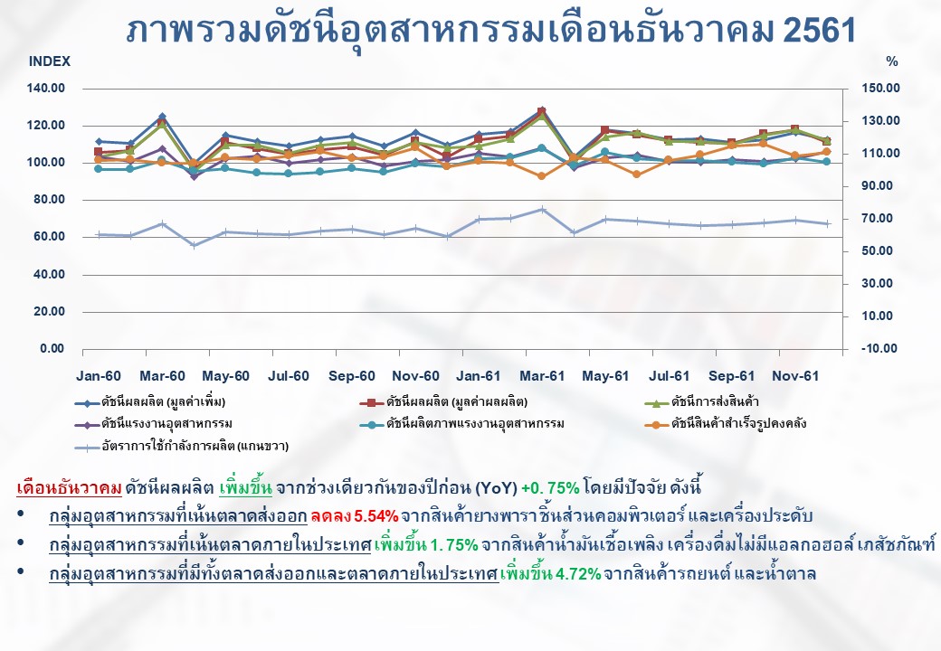 ภาพรวมดัชนีอุตสาหกรรมไทยประจำเดือนธันวาคม 2561