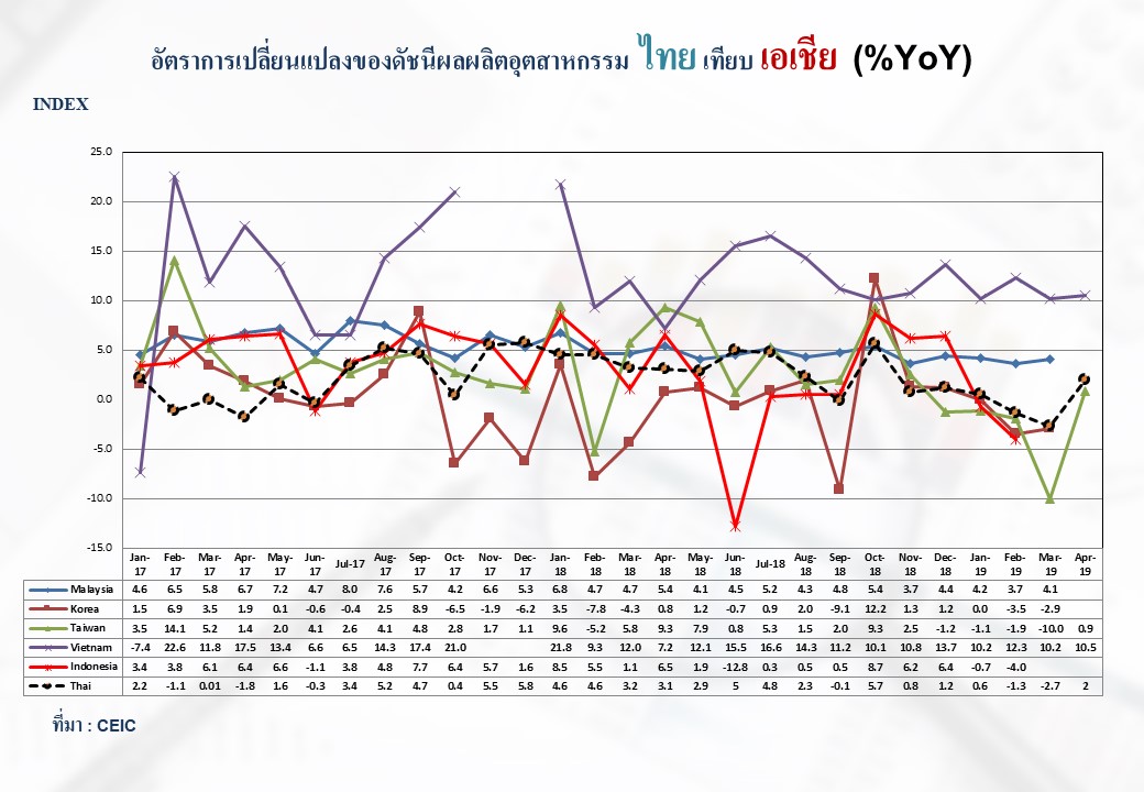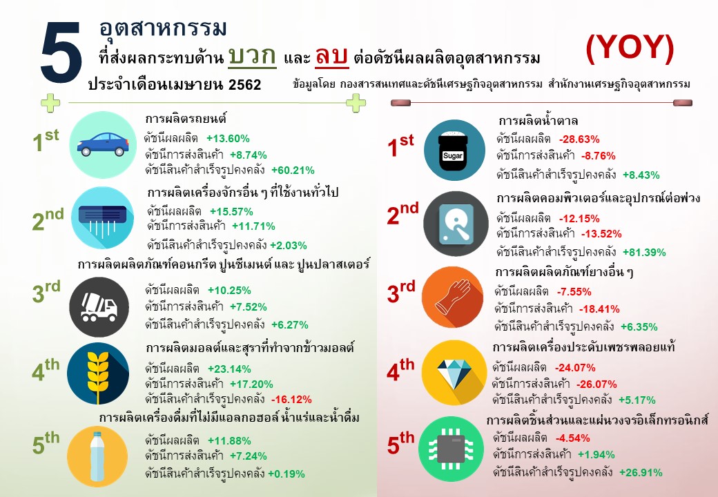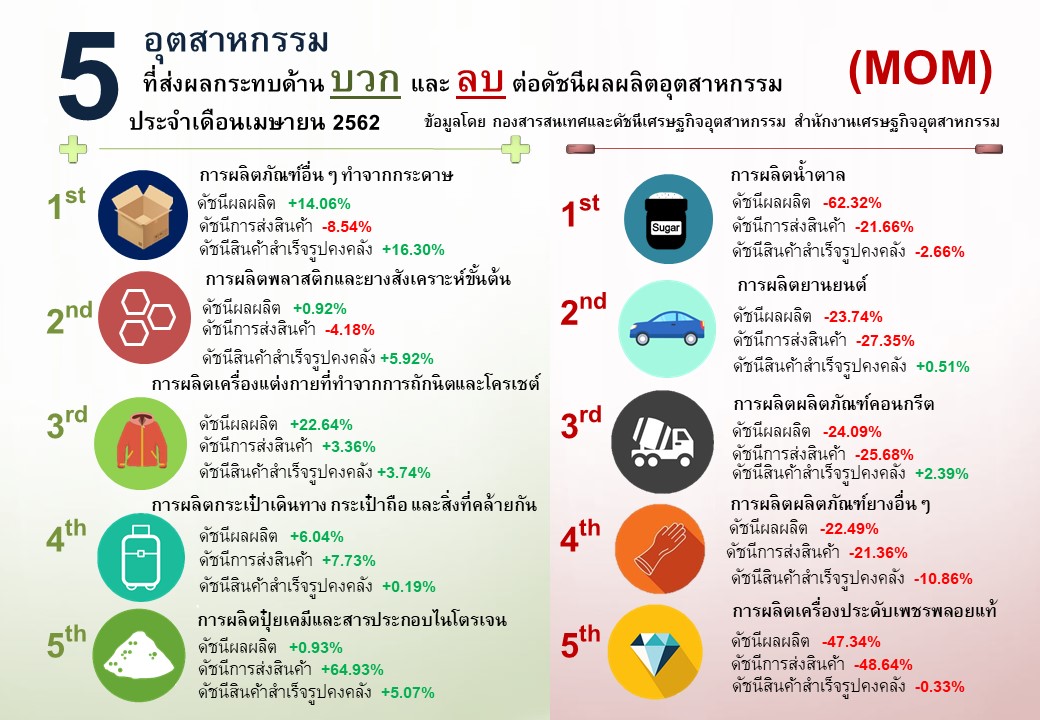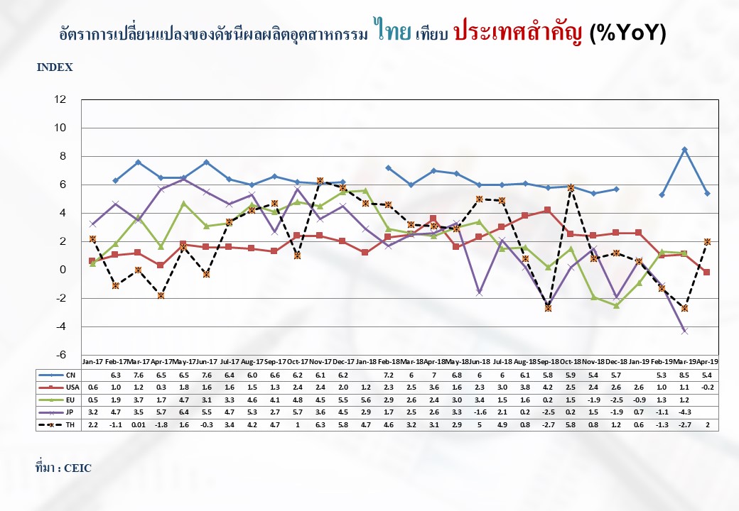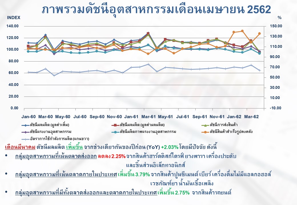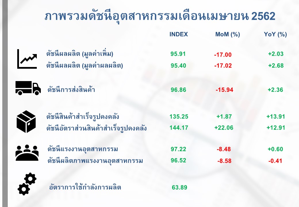 ภาพรวมดัชนีอุตสาหกรรมไทยประจำเดือนเมษายน 2562