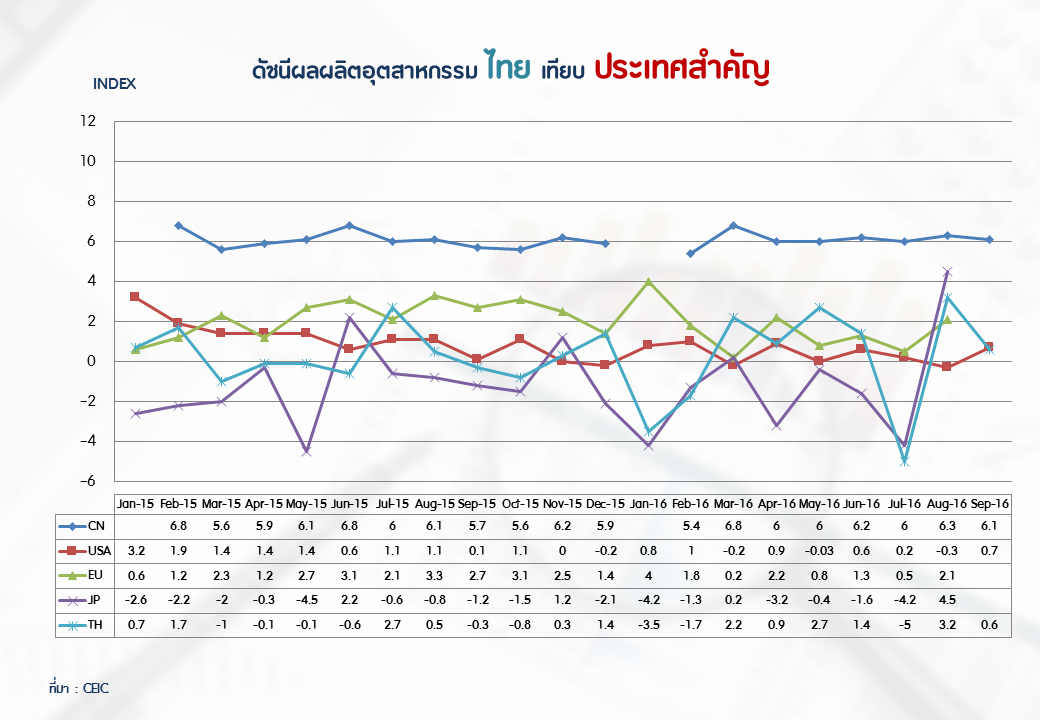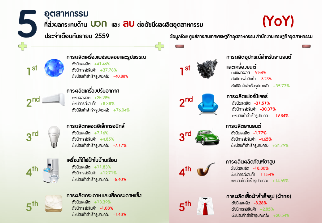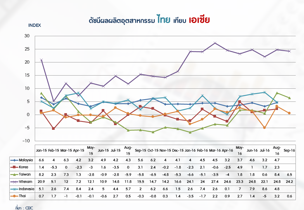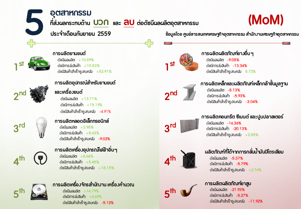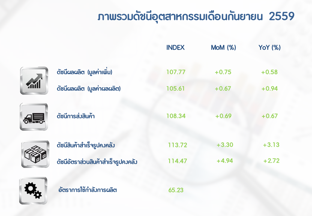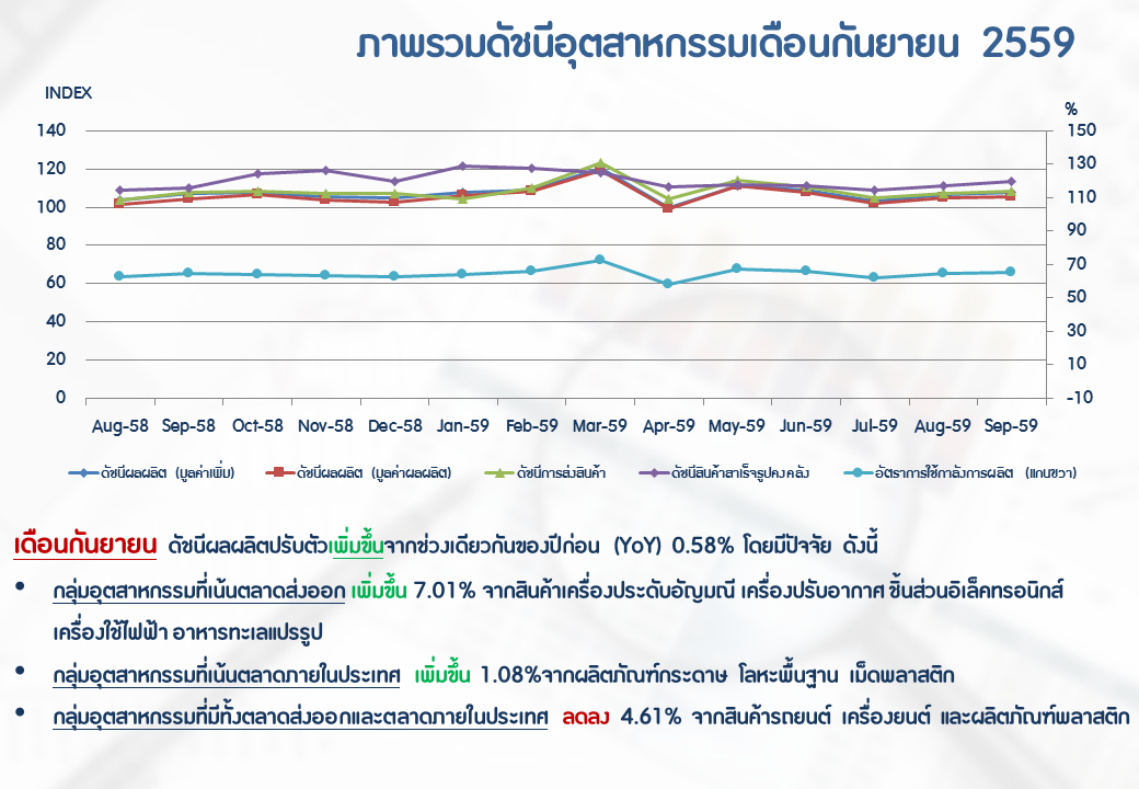 ภาพรวมดัชนีอุตสาหกรรมไทยประจำเดือนกันยายน 2559