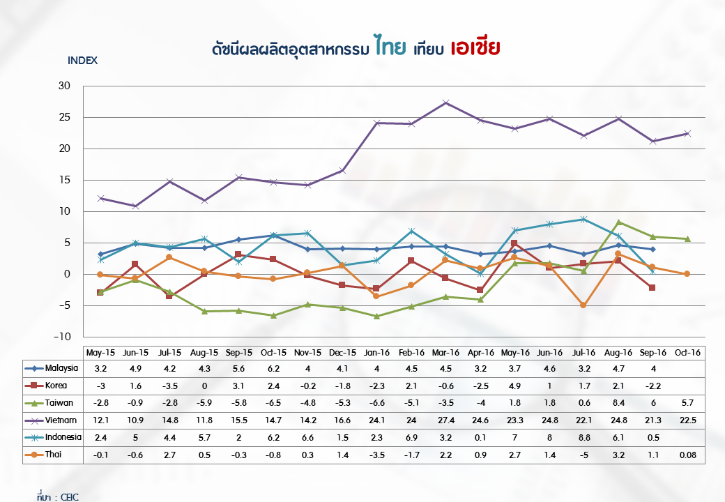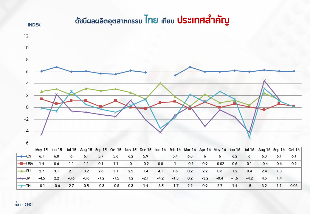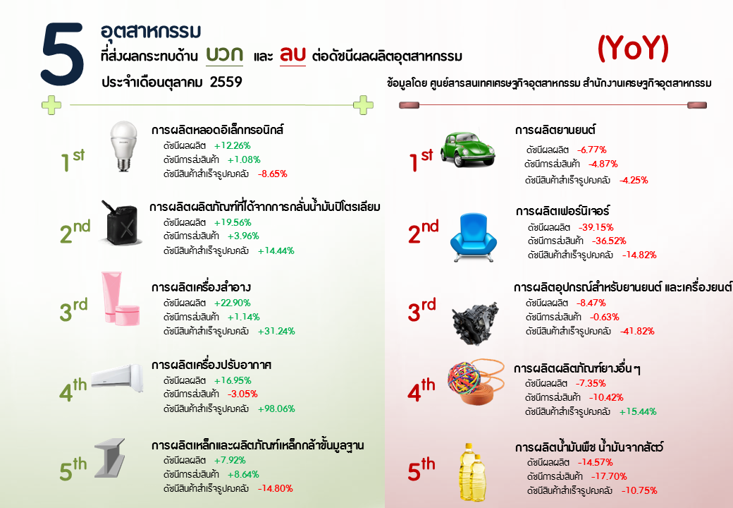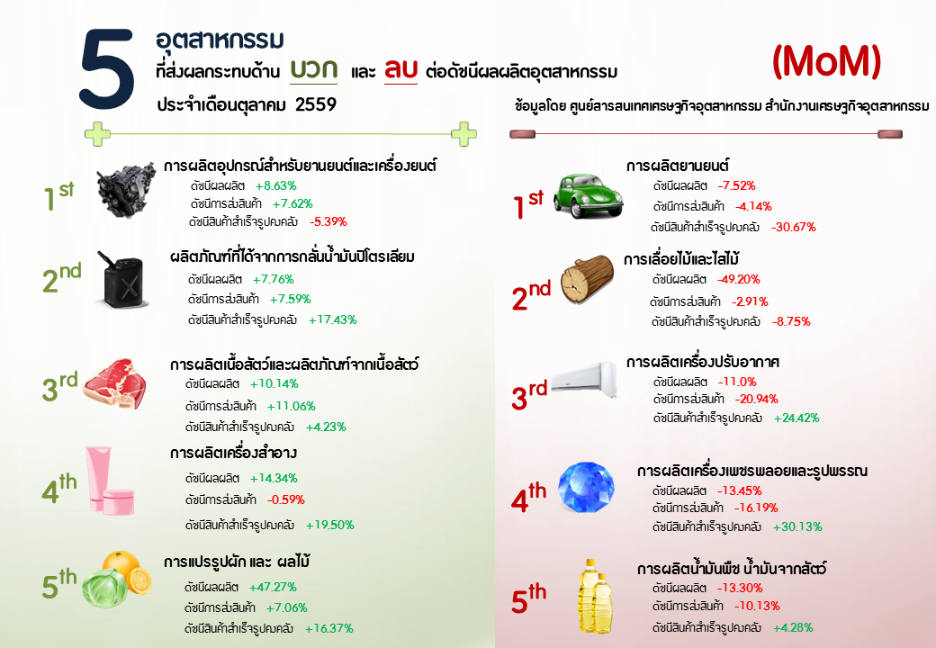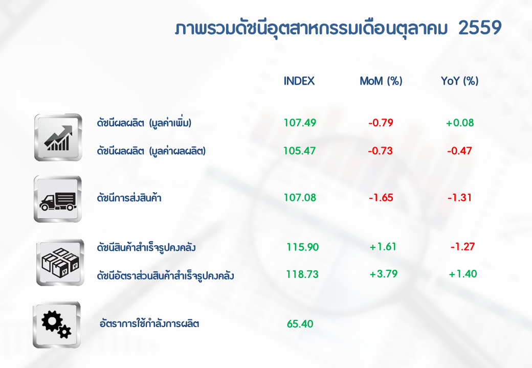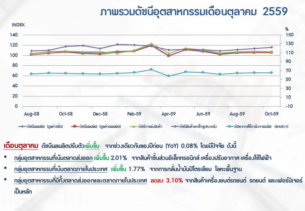 ภาพรวมดัชนีอุตสาหกรรมไทยประจำเดือนตุลาคม 2559