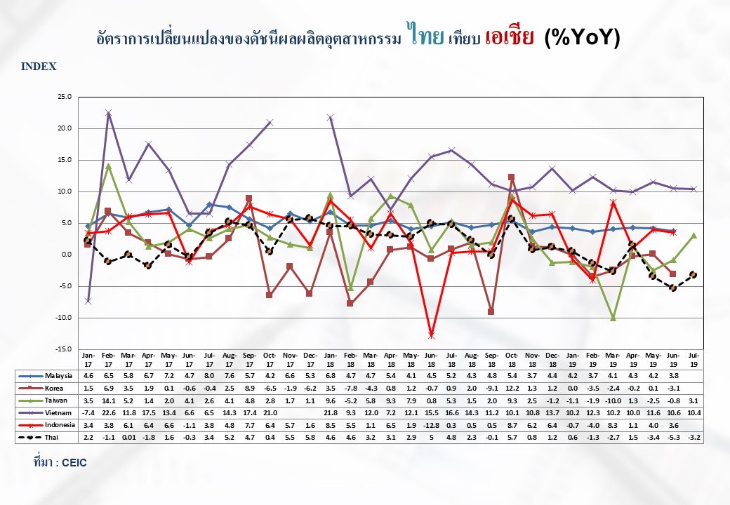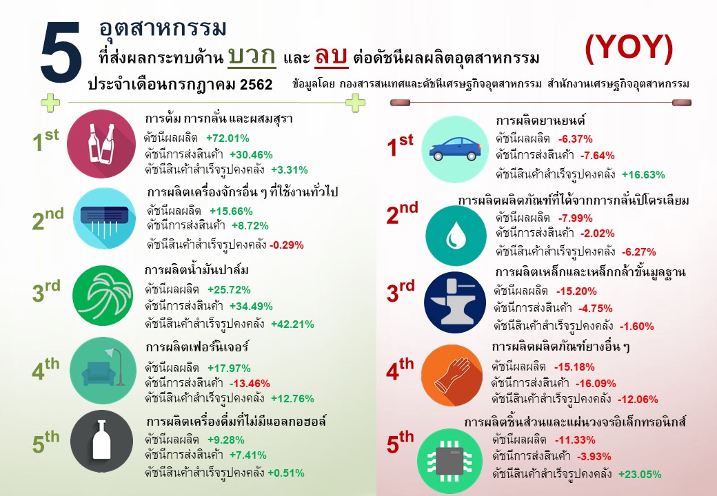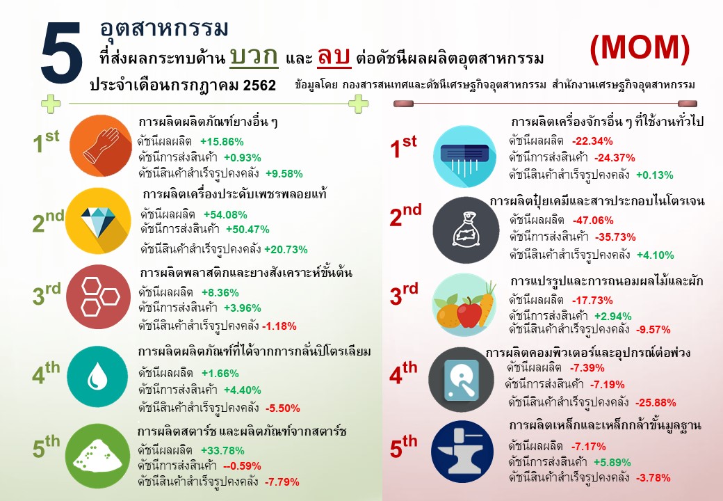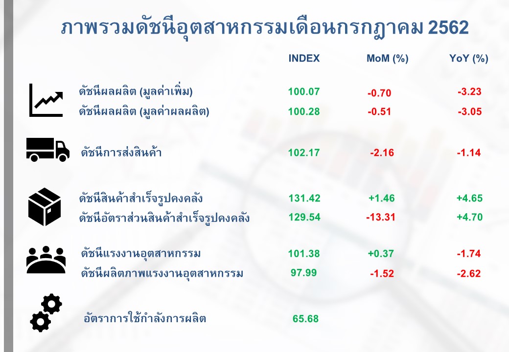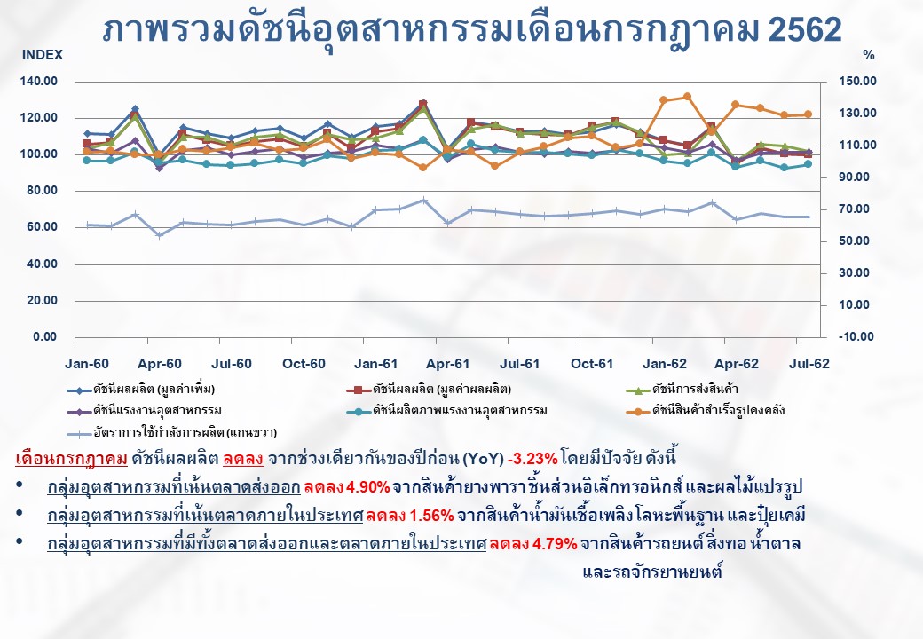 ภาพรวมดัชนีอุตสาหกรรมไทยประจำเดือนกรกฎาคม 2562