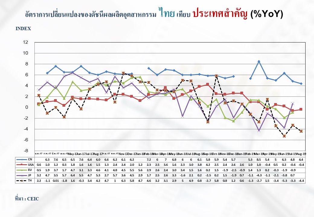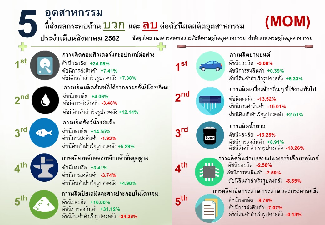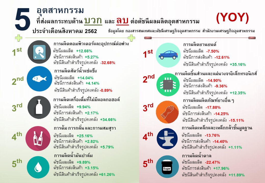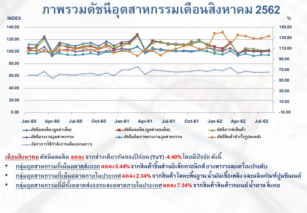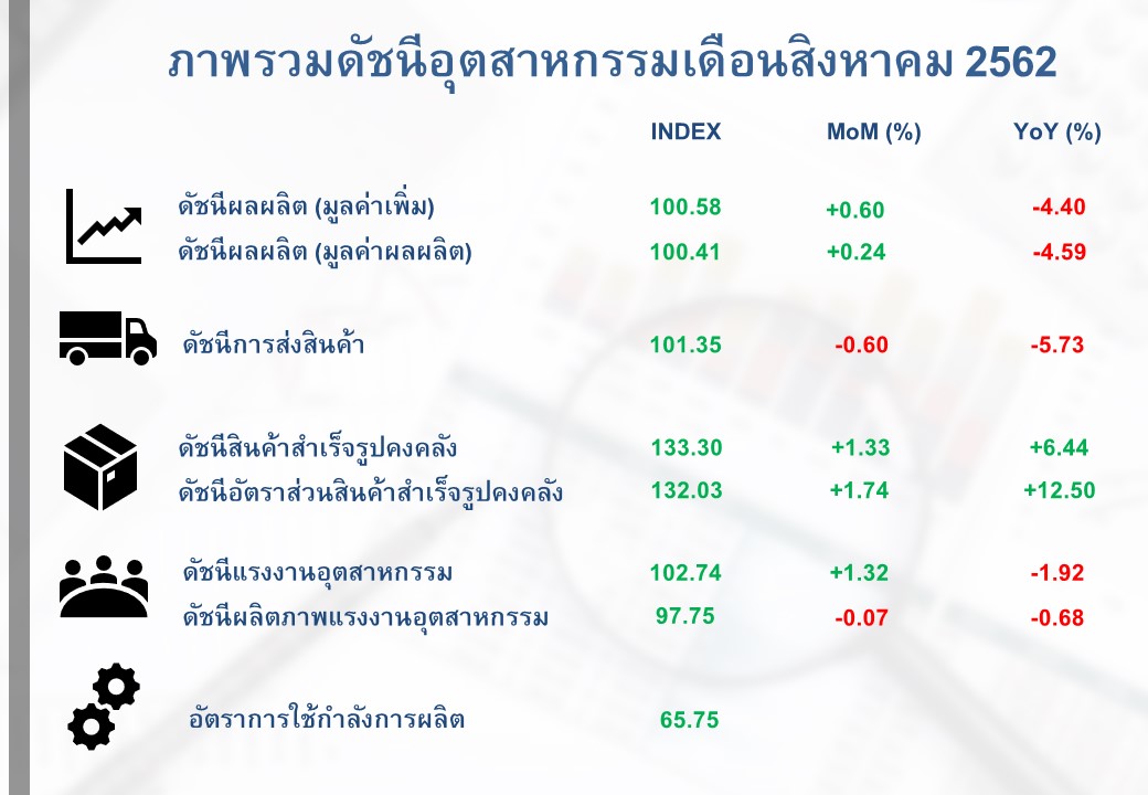 ภาพรวมดัชนีอุตสาหกรรมไทยประจำเดือนสิงหาคม 2562