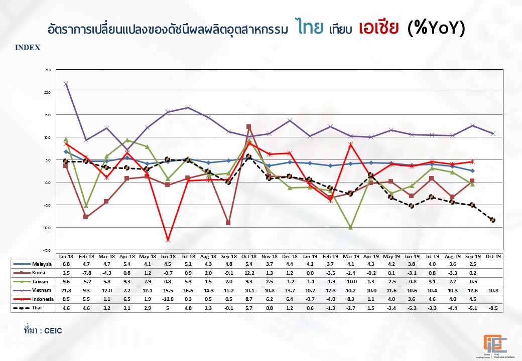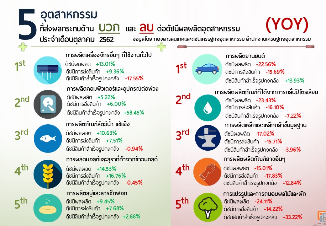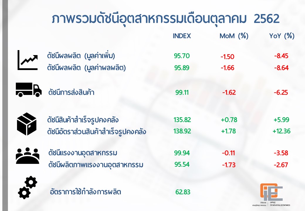 ภาพรวมดัชนีอุตสาหกรรมไทยประจำเดือนตุลาคม 2562
