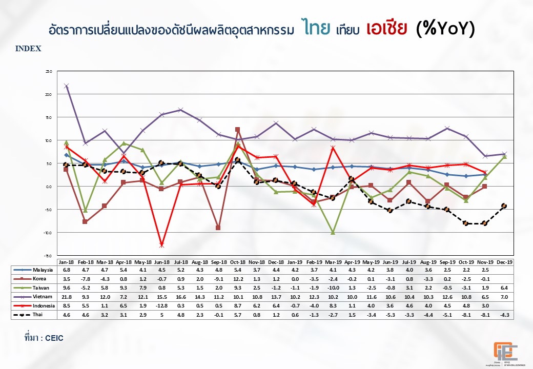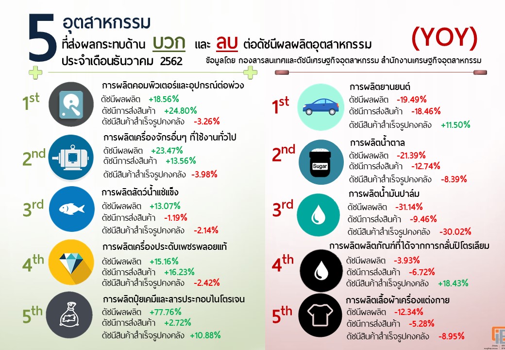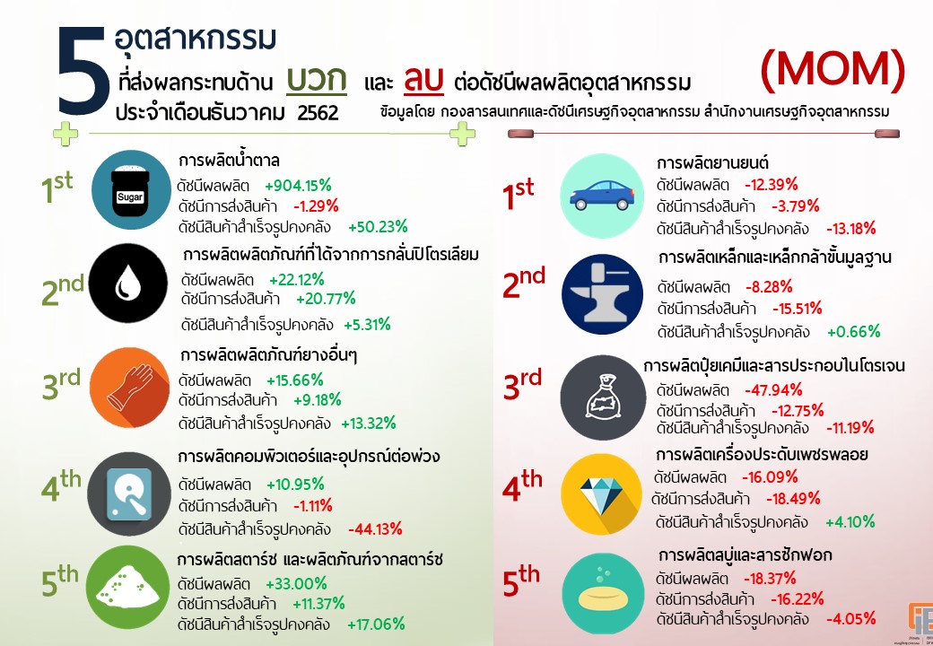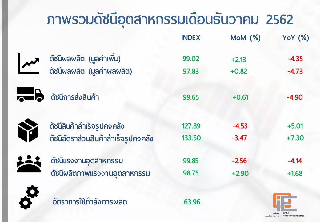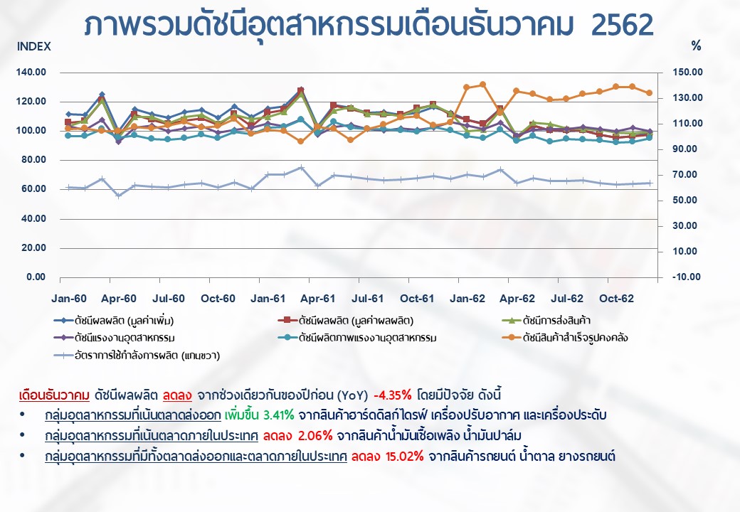 ภาพรวมดัชนีอุตสาหกรรมไทยประจำเดือนธันวาคม 2562