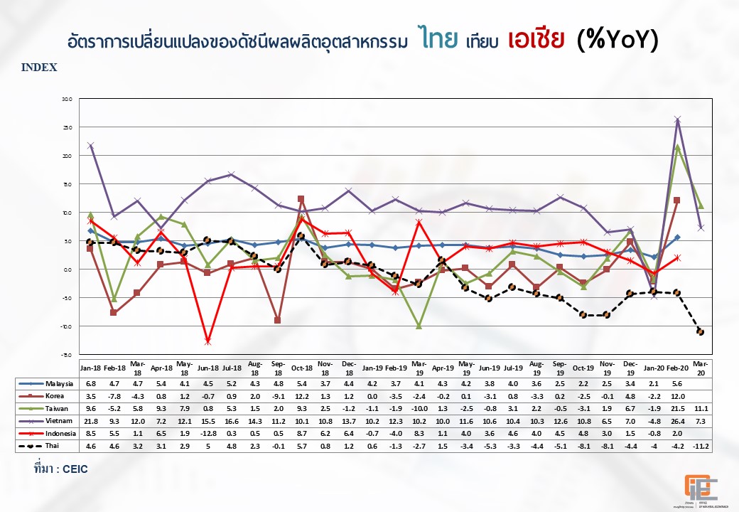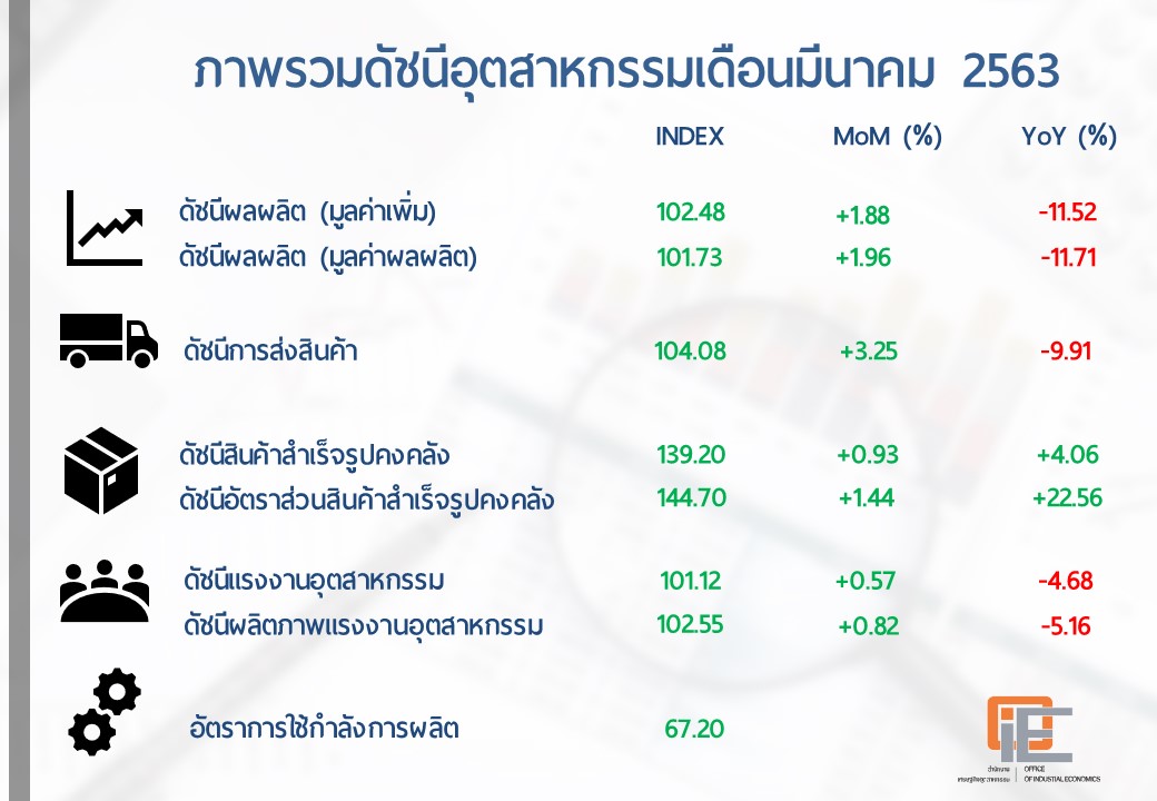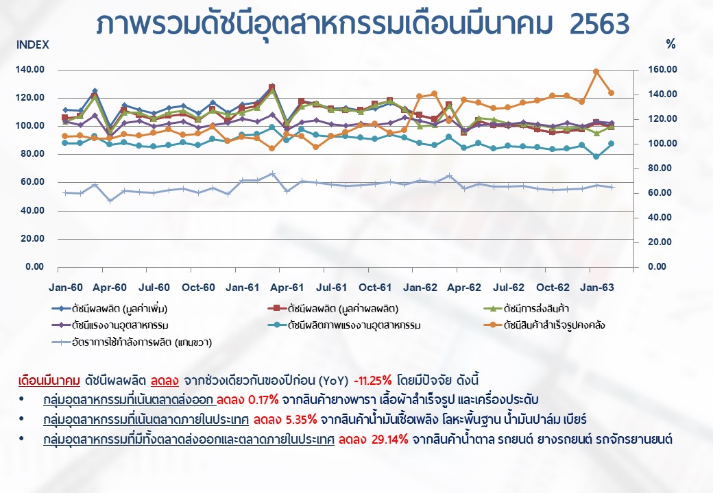 ภาพรวมดัชนีอุตสาหกรรมไทยประจำเดือนมีนาคม 2563