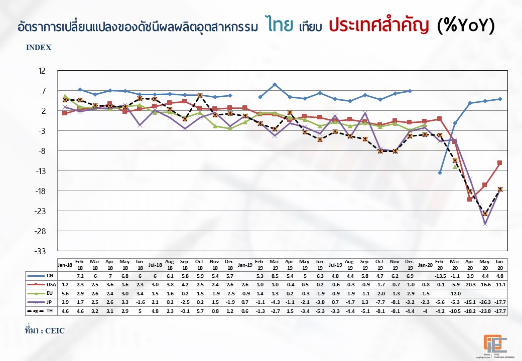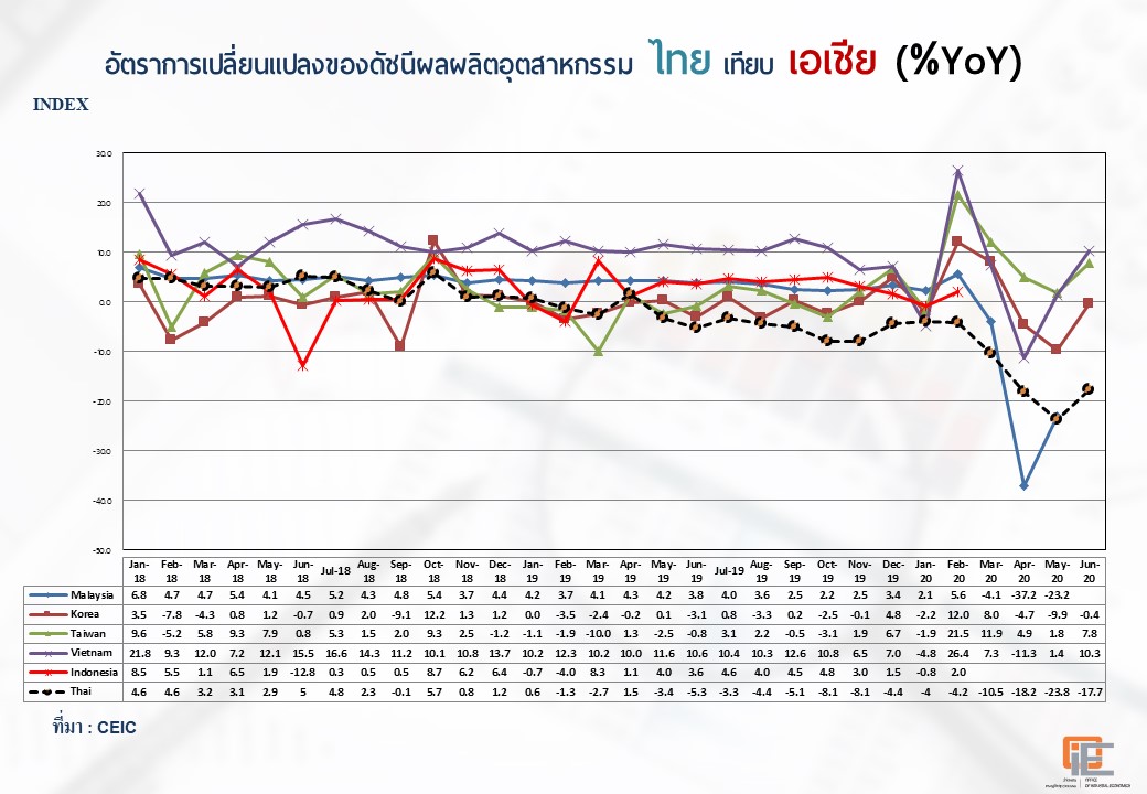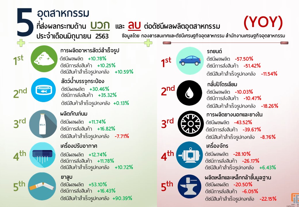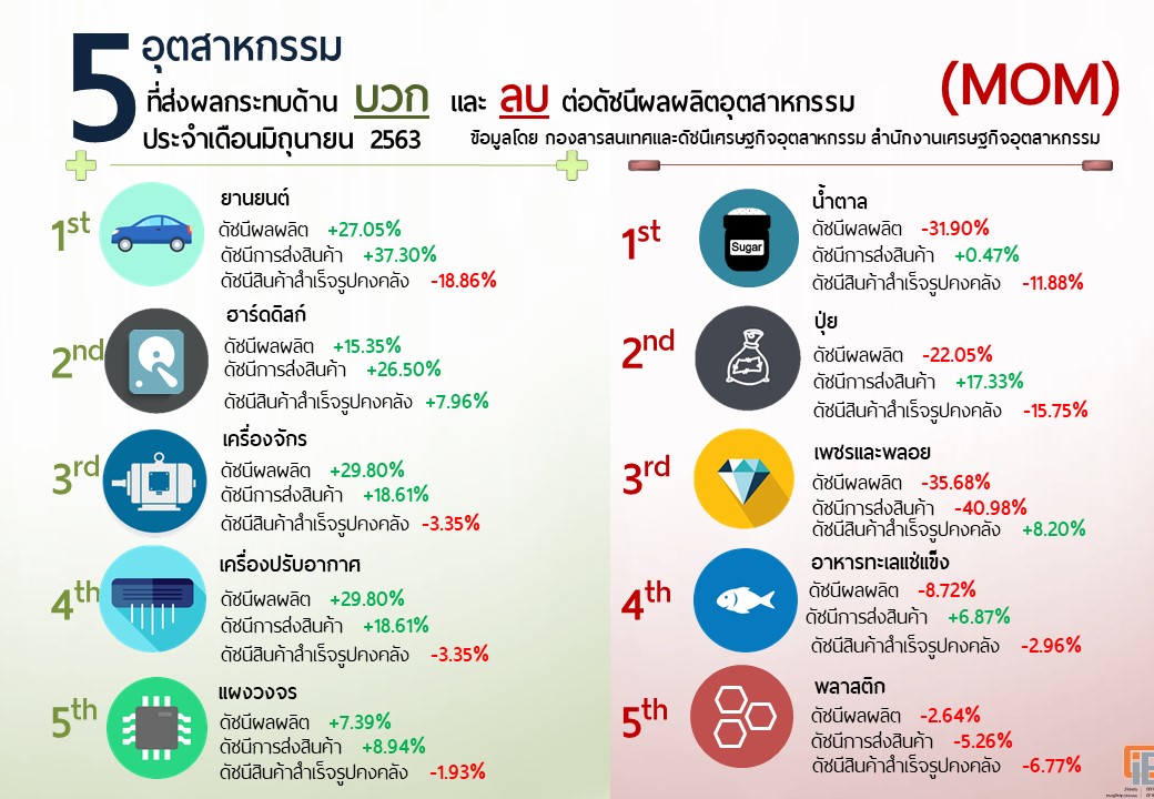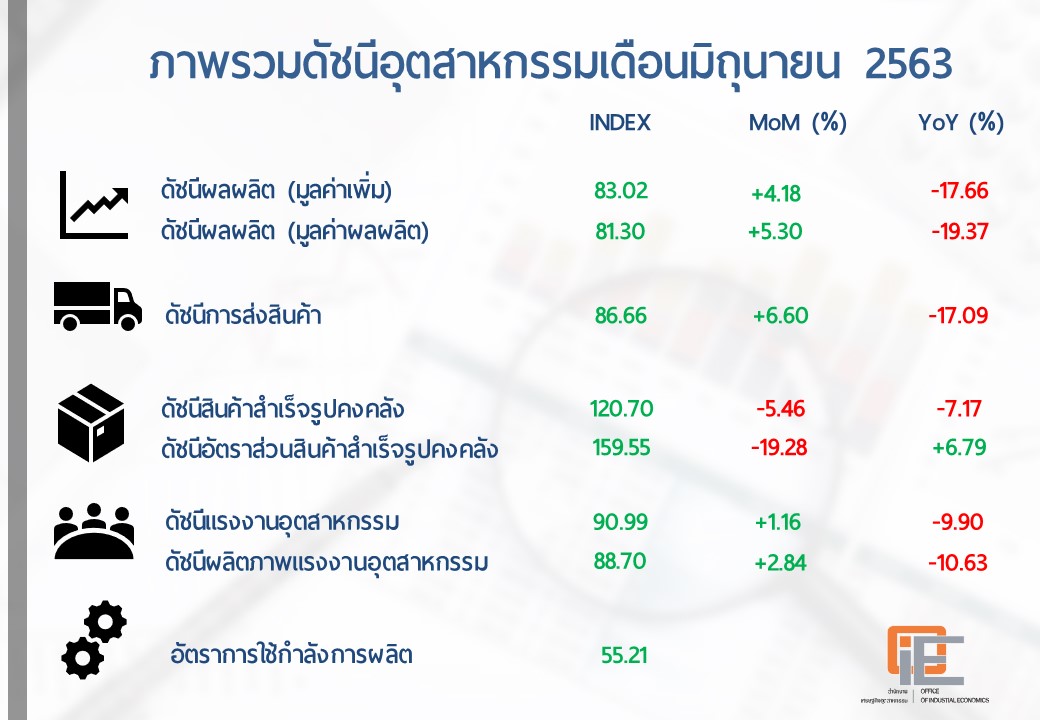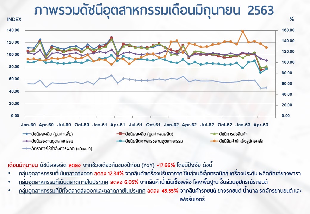 ภาพรวมดัชนีอุตสาหกรรมไทยประจำเดือนมิถุนายน 2563