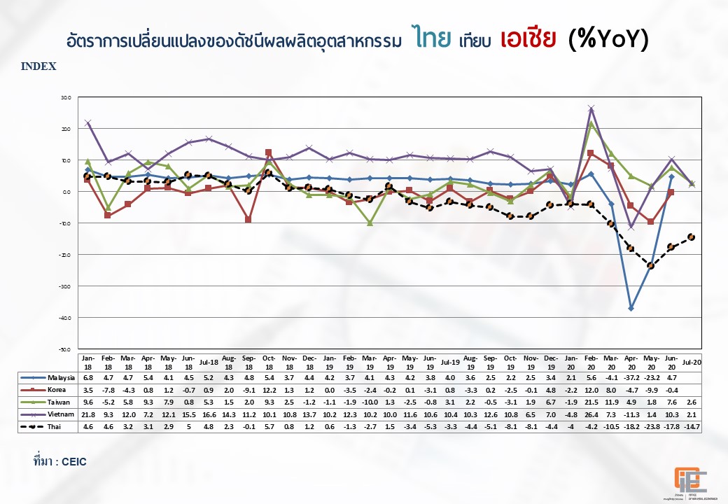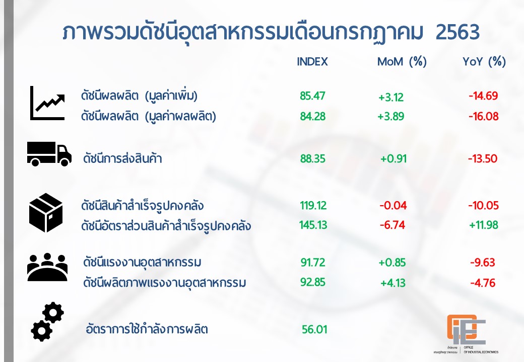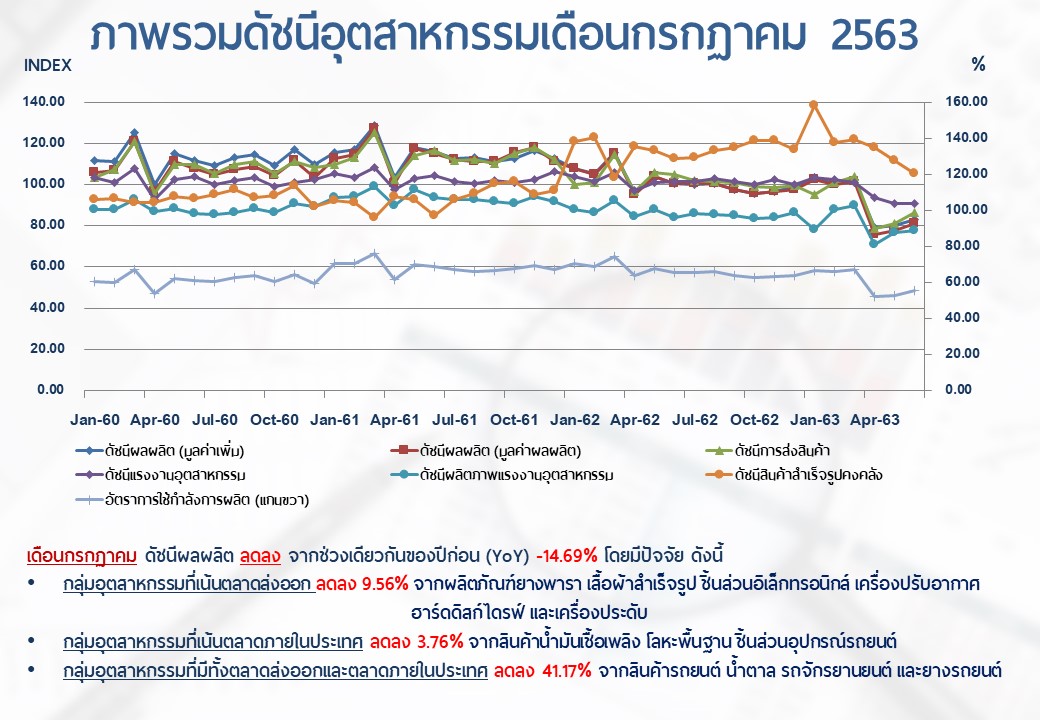 ภาพรวมดัชนีอุตสาหกรรมไทยประจำเดือนกรกฏาคม 2563