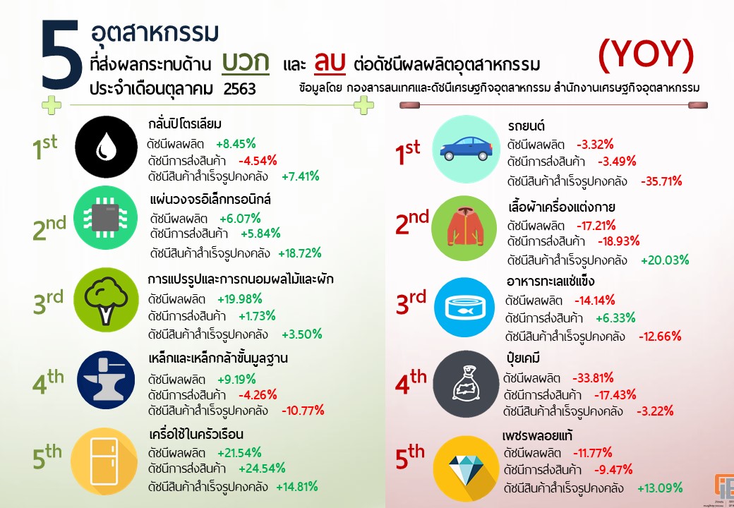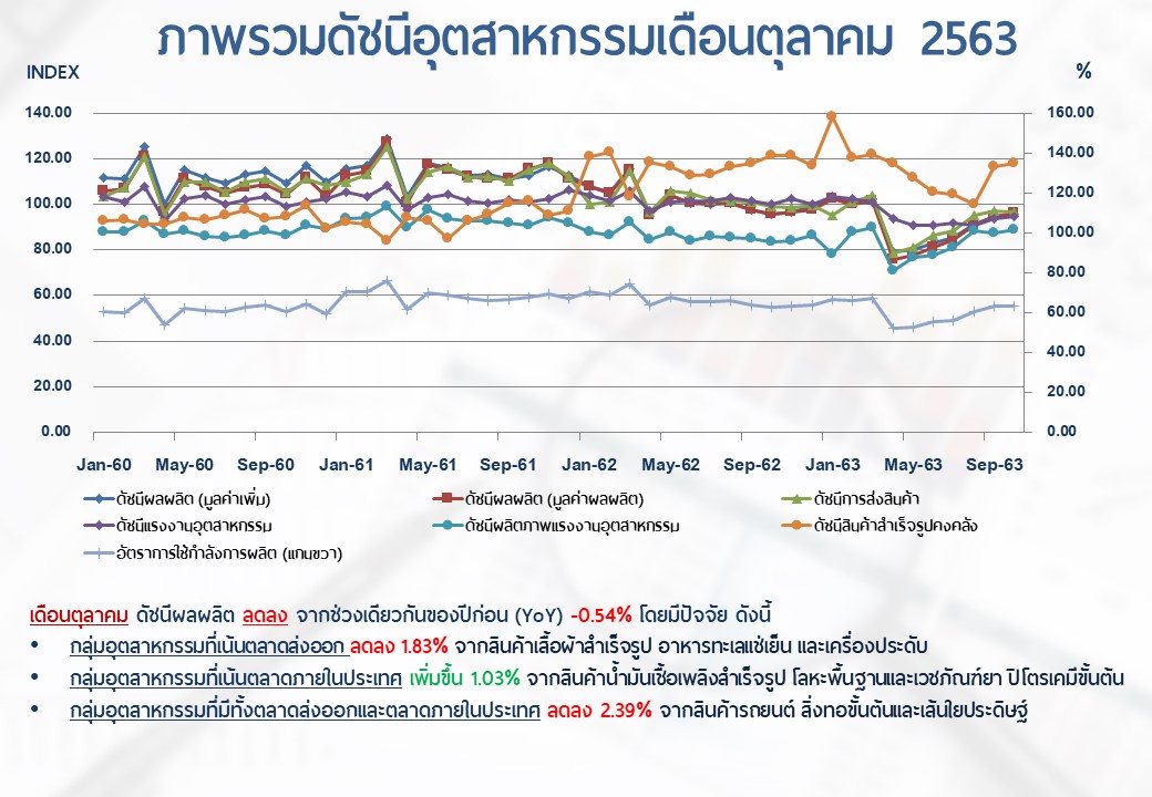 ภาพรวมดัชนีอุตสาหกรรมไทยประจำเดือนตุลาคม 2563