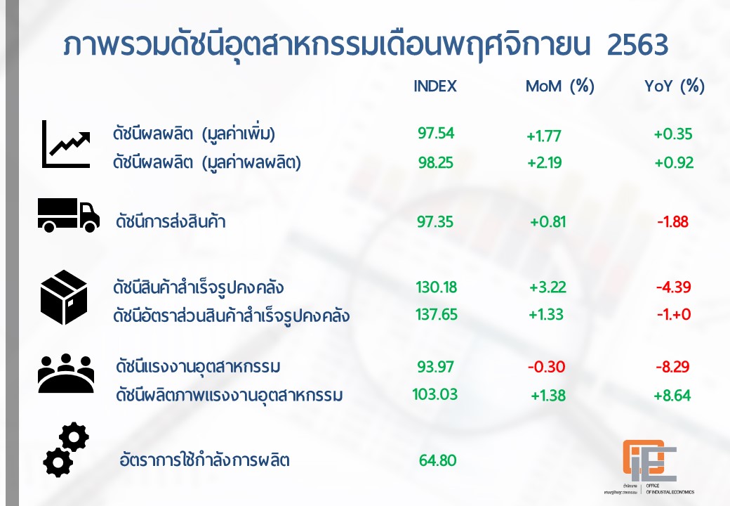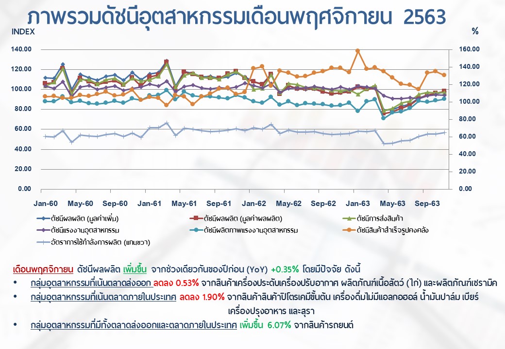 ภาพรวมดัชนีอุตสาหกรรมไทยประจำเดือนพฤศจิกายน 2563