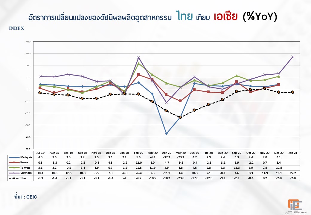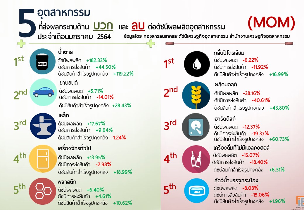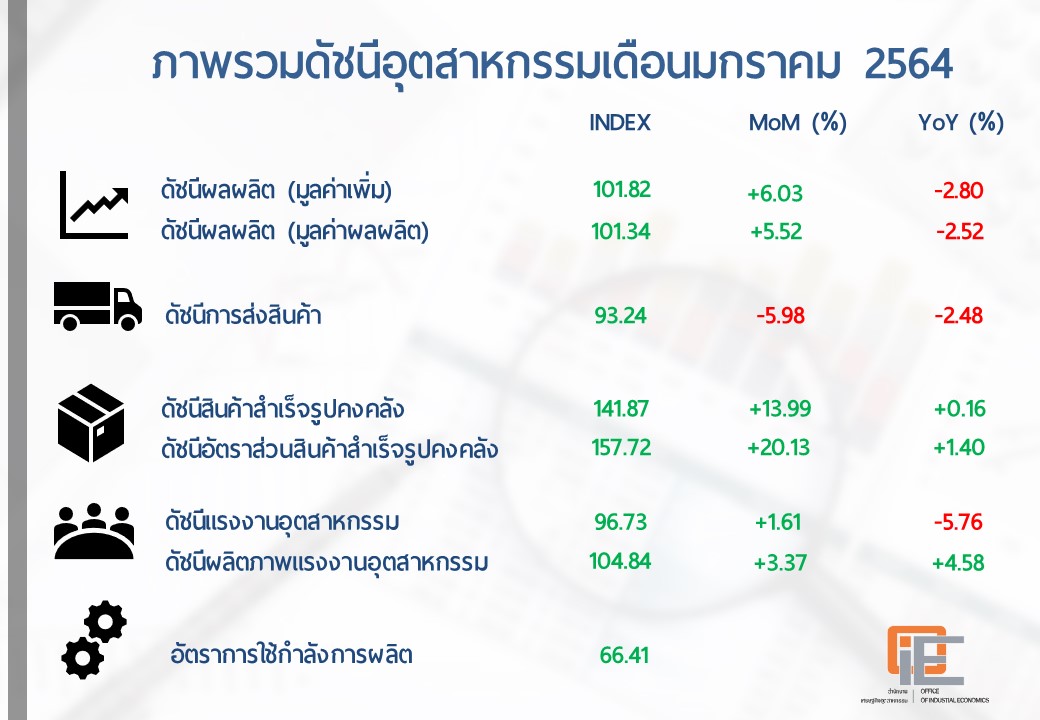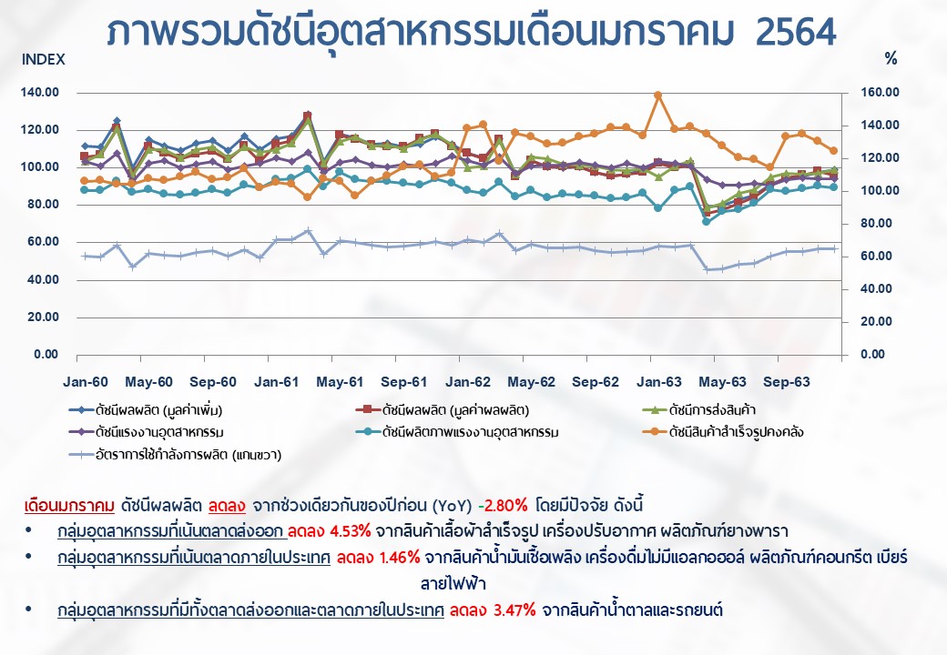 ภาพรวมดัชนีอุตสาหกรรมไทยประจำเดือนมกราคม 2564