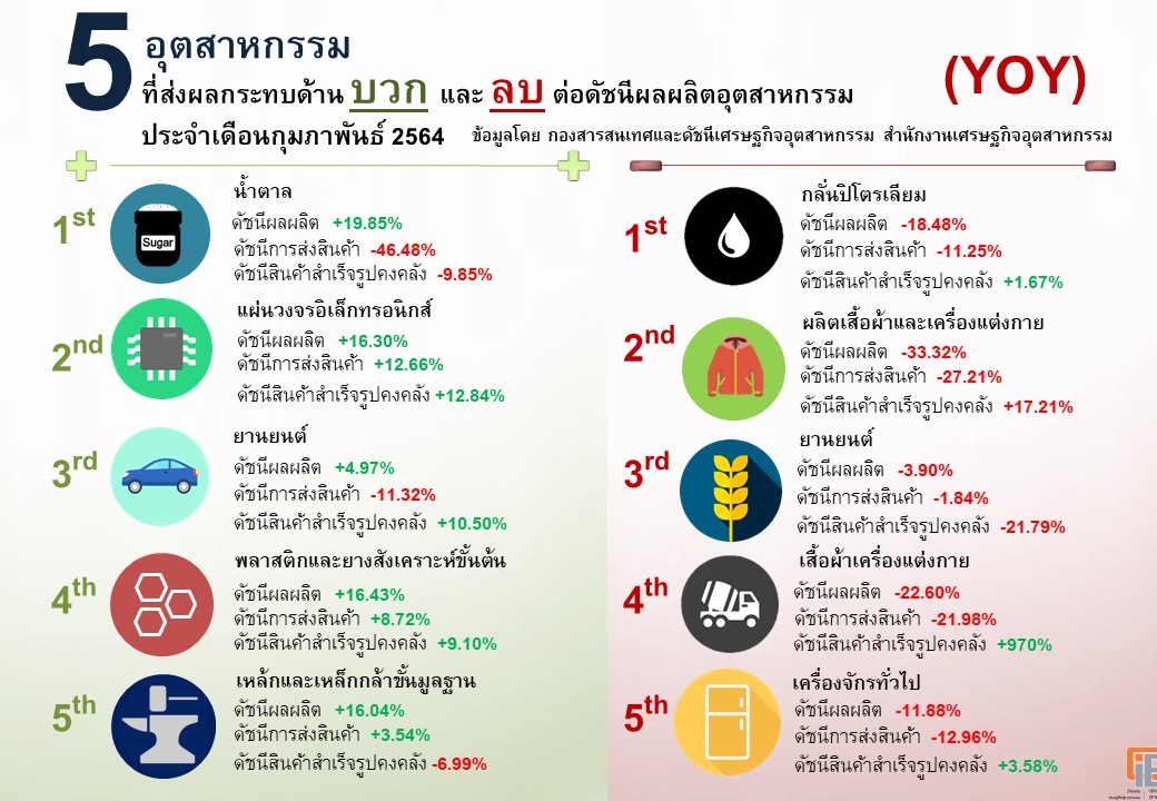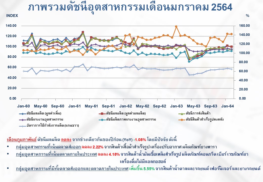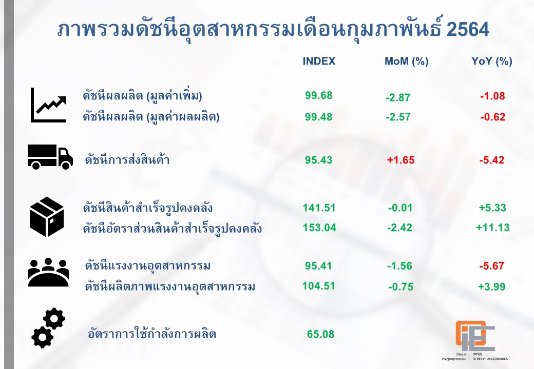ภาพรวมดัชนีอุตสาหกรรมไทยประจำเดือนกุมภาพันธ์ 2564