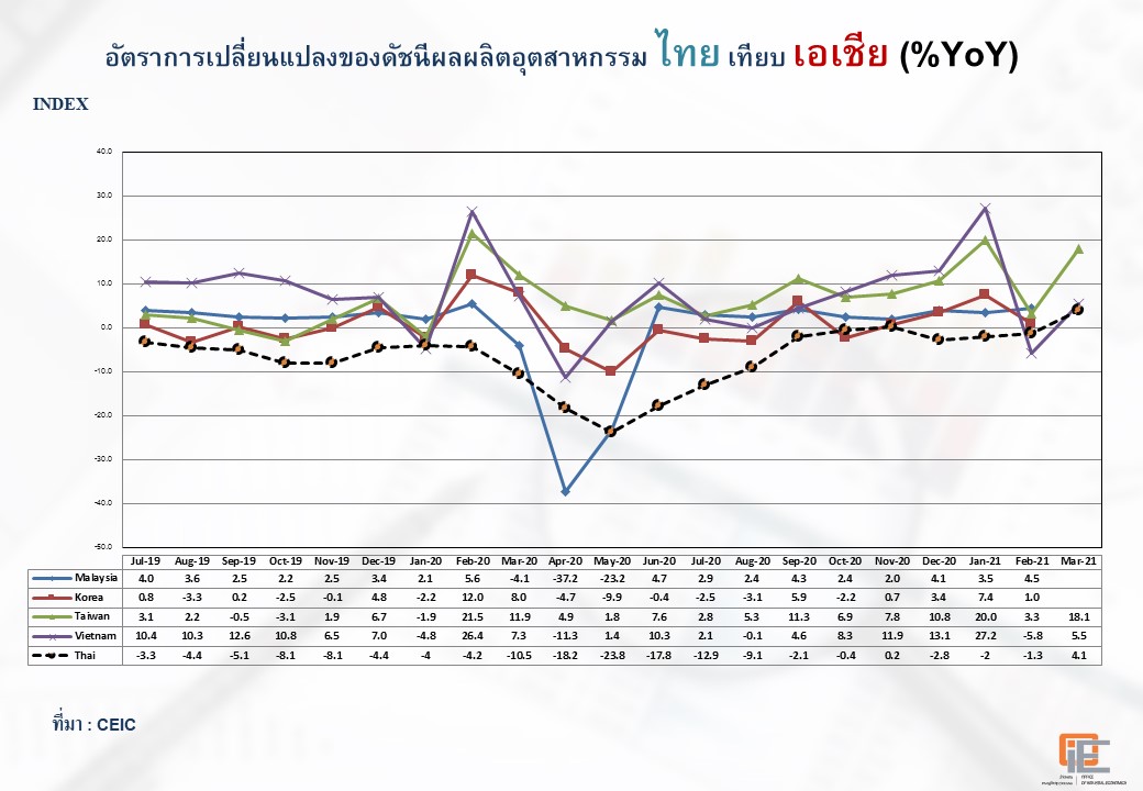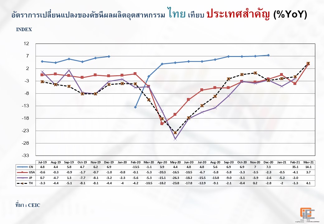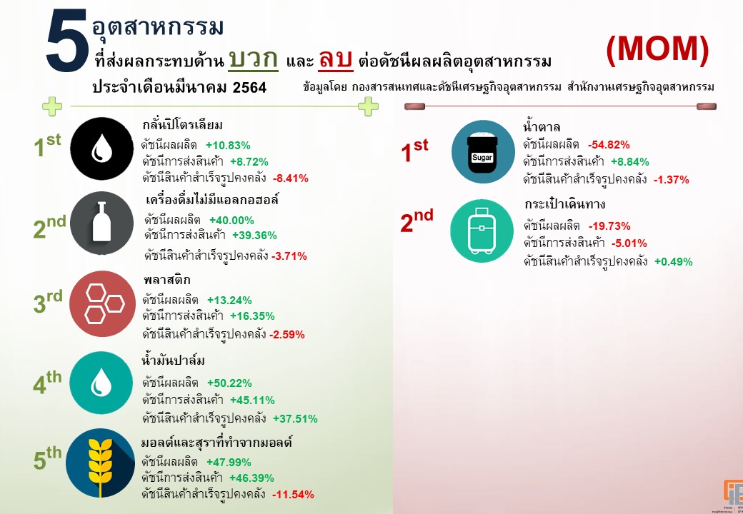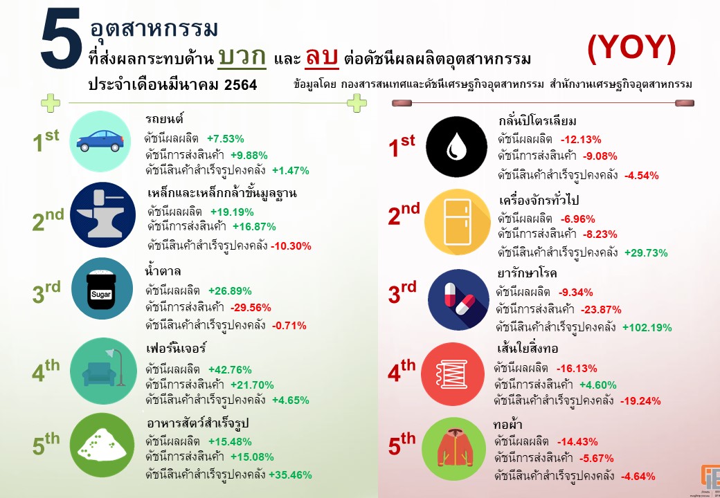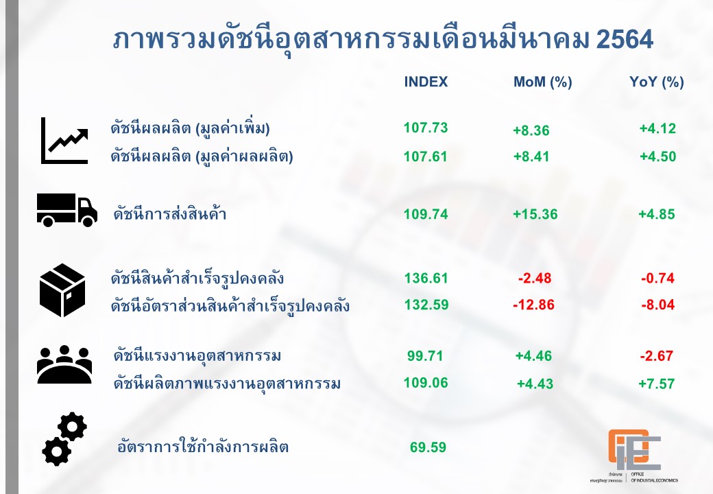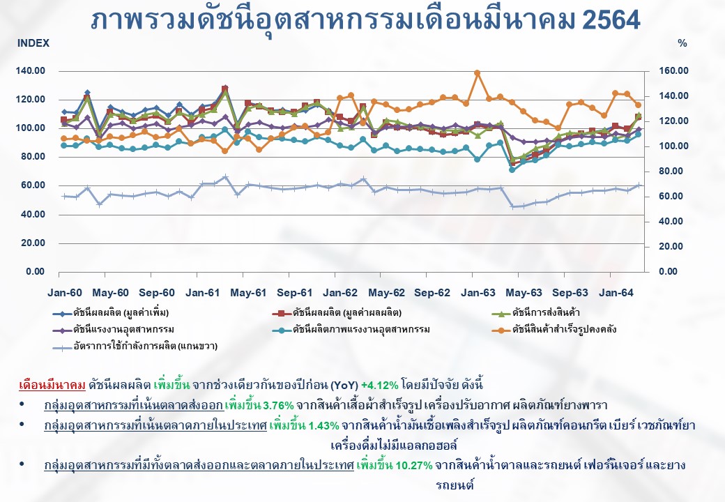 ภาพรวมดัชนีอุตสาหกรรมไทยประจำเดือนมีนาคม 2564