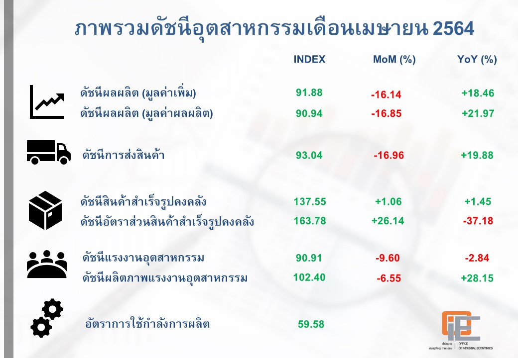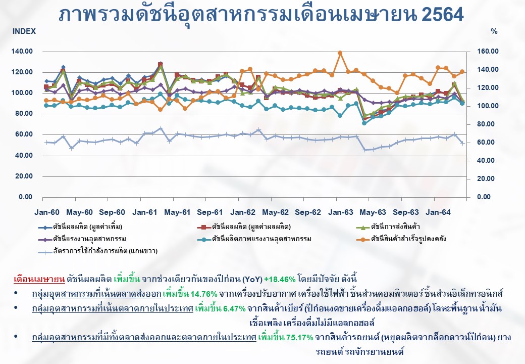 ภาพรวมดัชนีอุตสาหกรรมไทยประจำเดือนเมษายน 2564