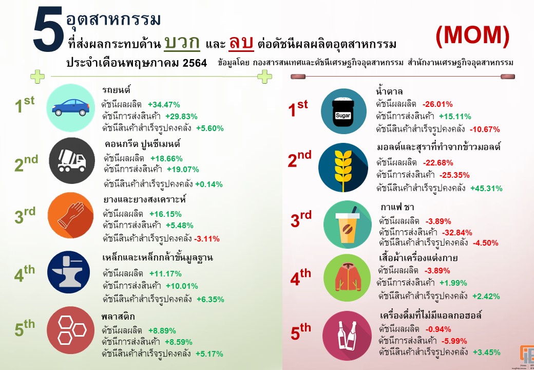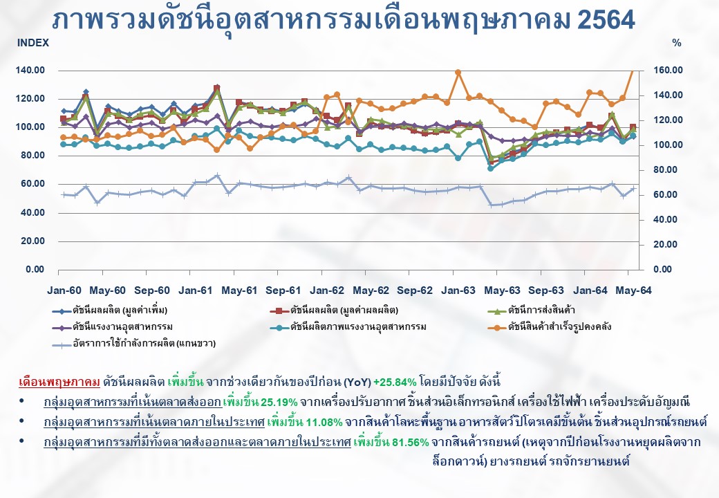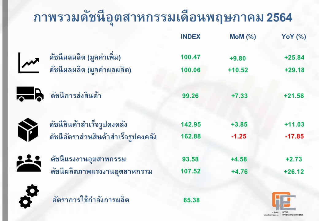 ภาพรวมดัชนีอุตสาหกรรมไทยประจำเดือนพฤษภาคม 2564