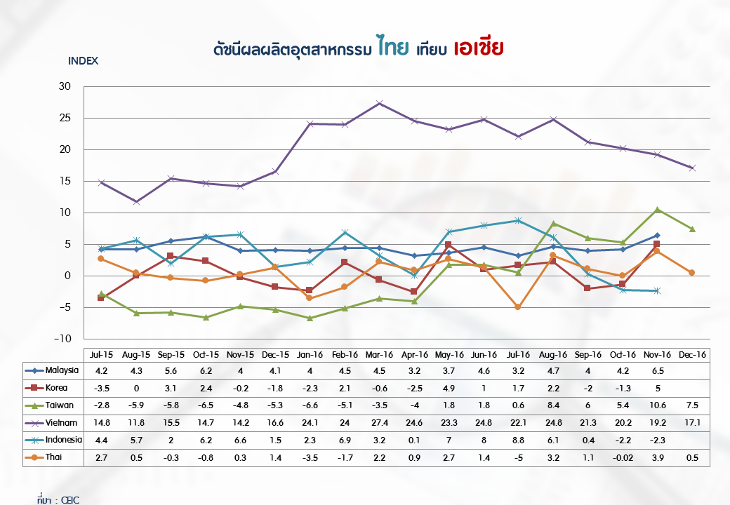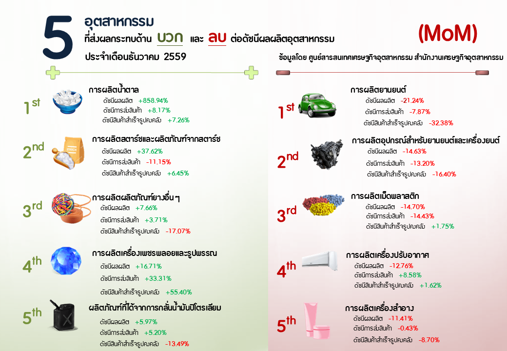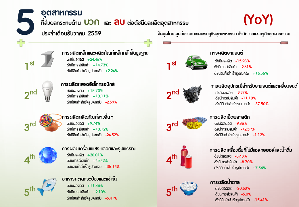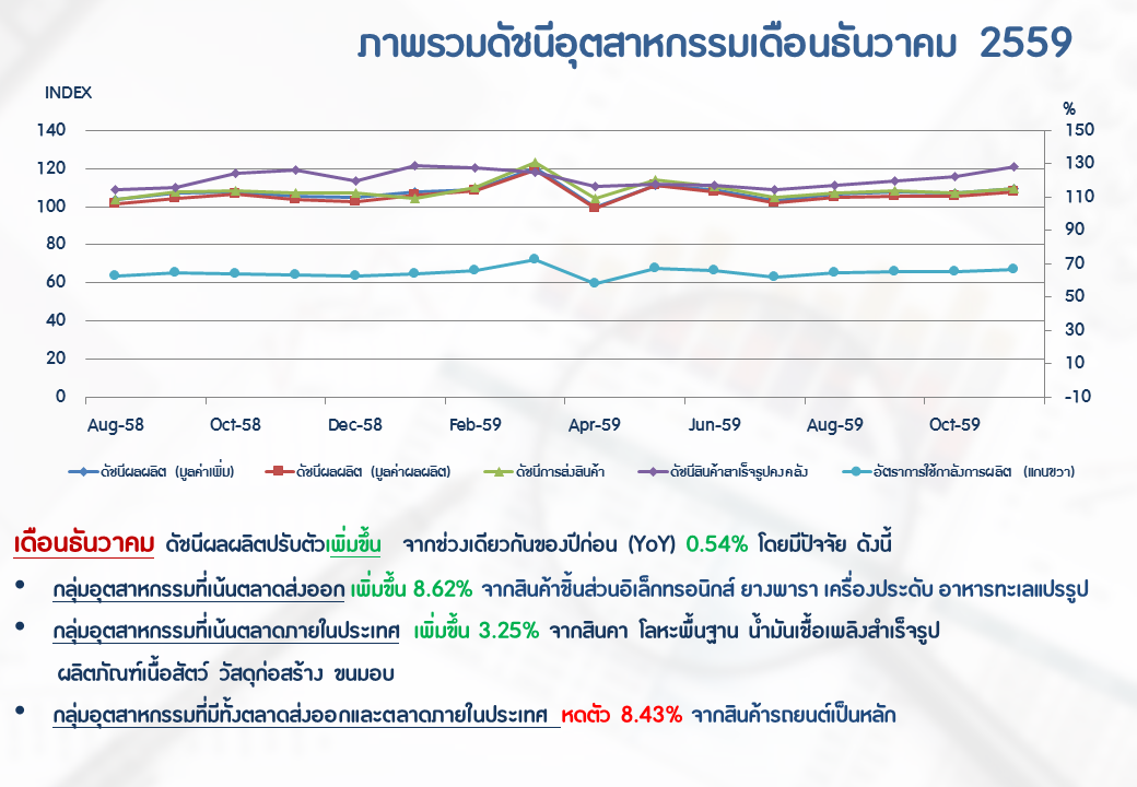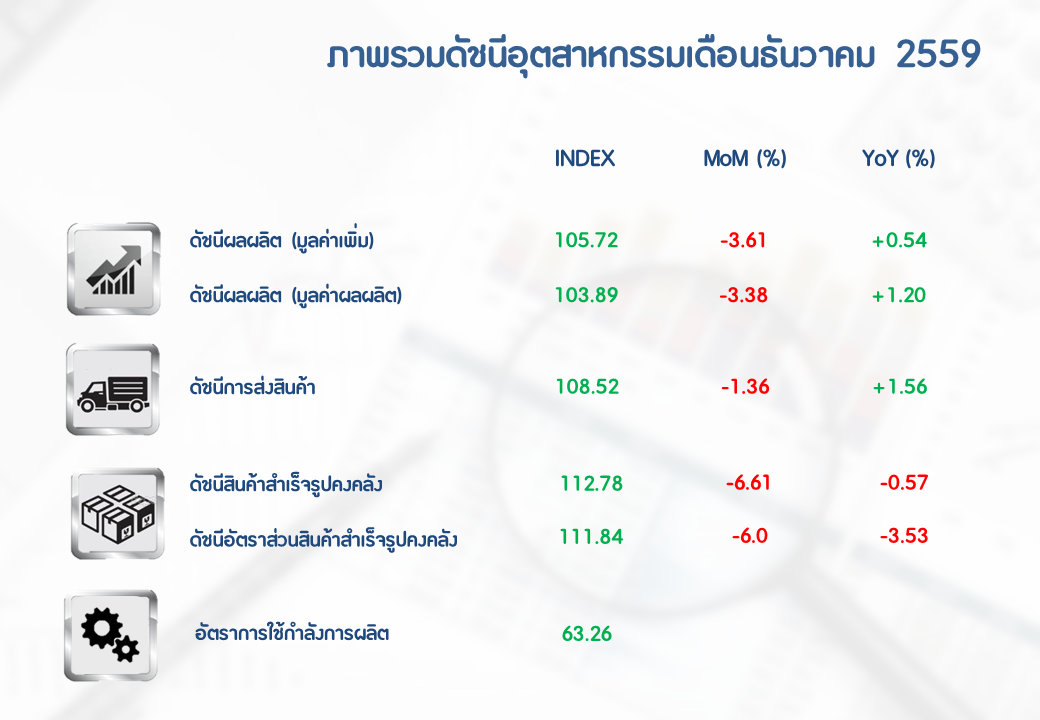 ภาพรวมดัชนีอุตสาหกรรมไทยประจำเดือนธันวาคม 2559