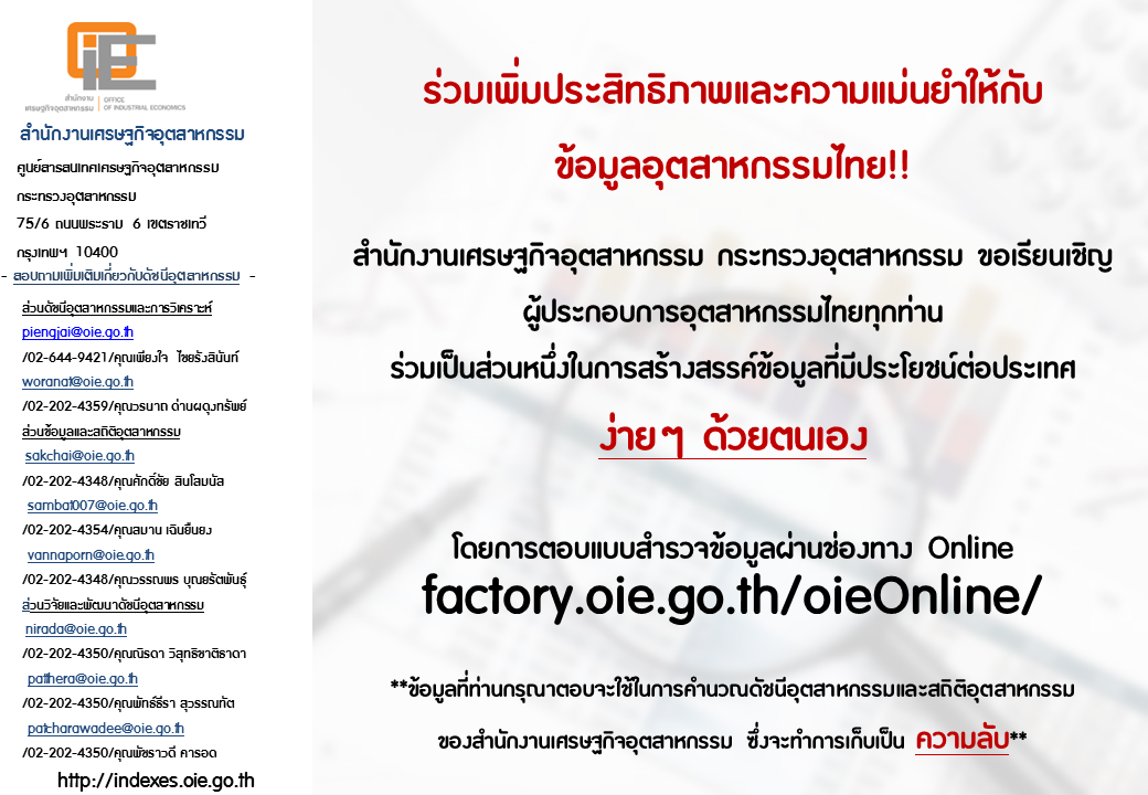 สรุปดัชนีอุตสาหกรรมรายเดือน