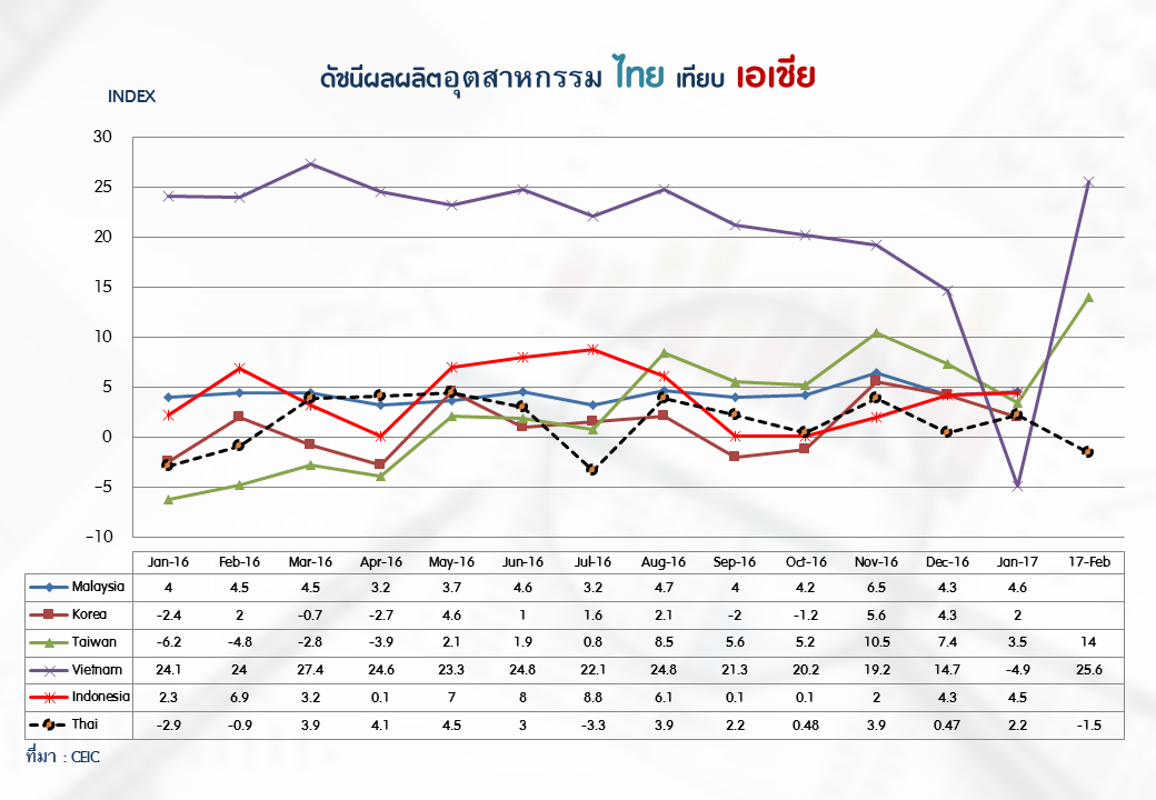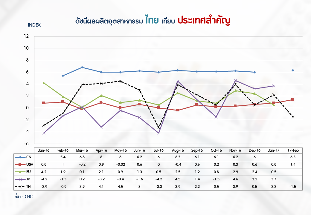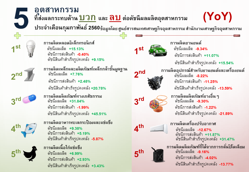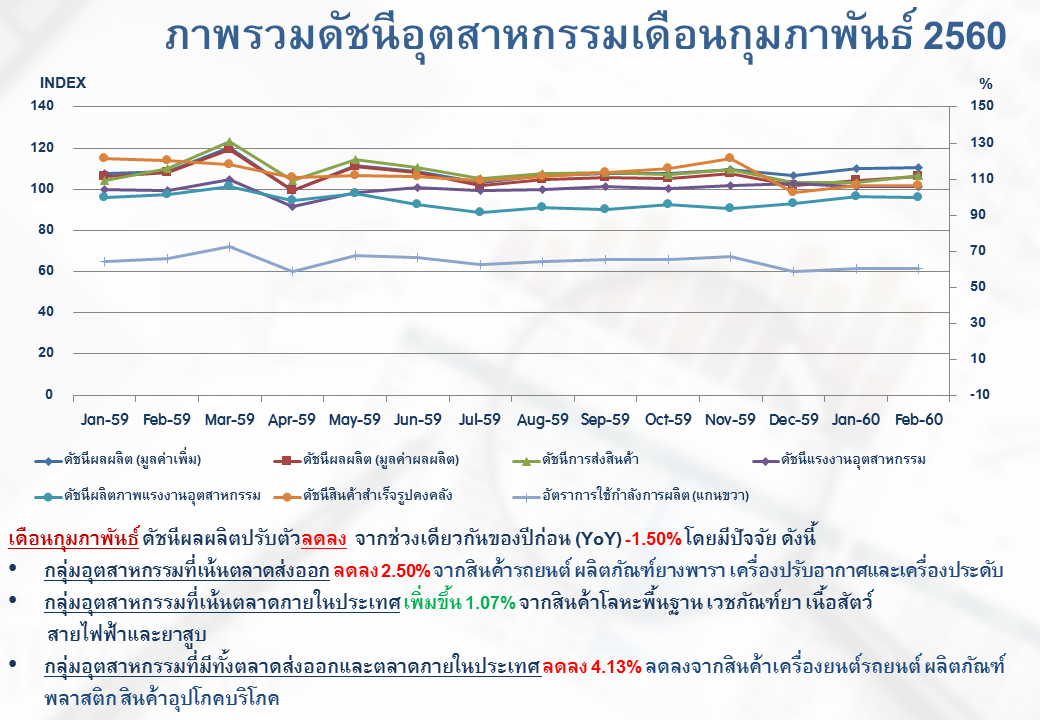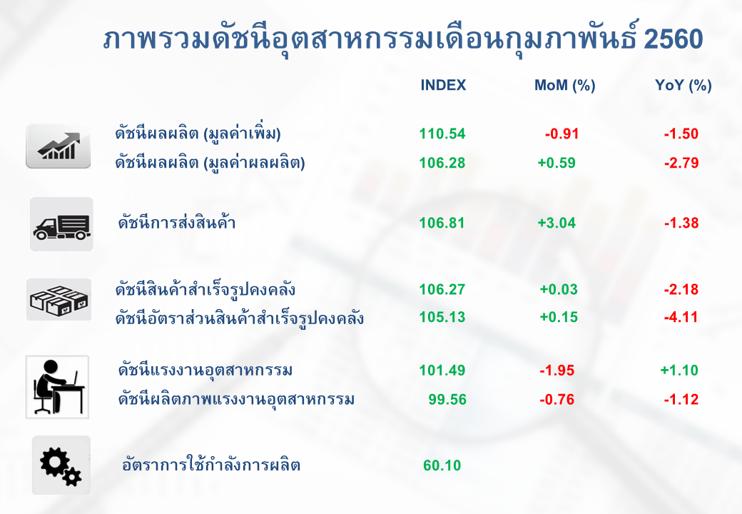 ภาพรวมดัชนีอุตสาหกรรมไทยประจำเดือนกุมภาพันธ์ 2560