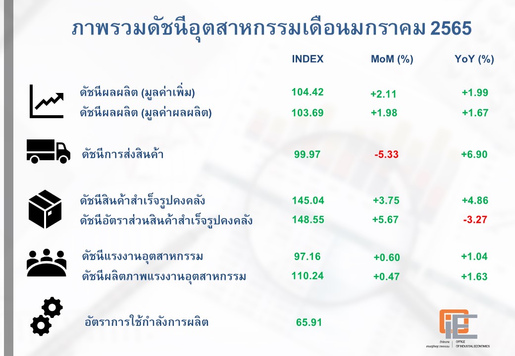 ภาพรวมดัชนีอุตสาหกรรมเดือนมกราคม 2565