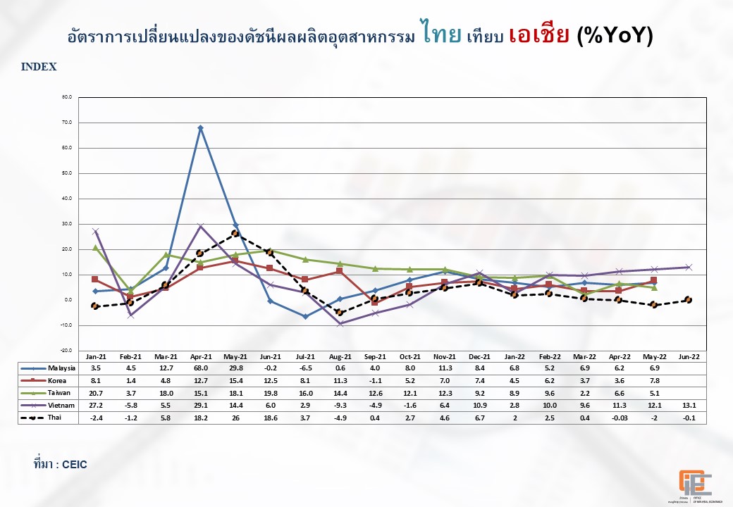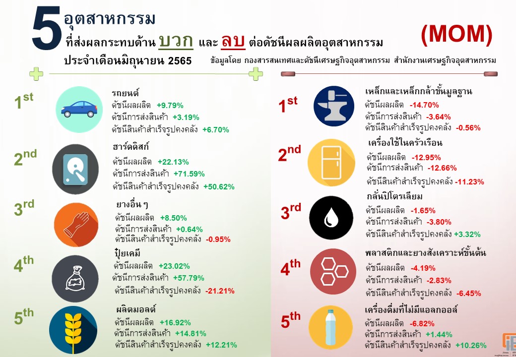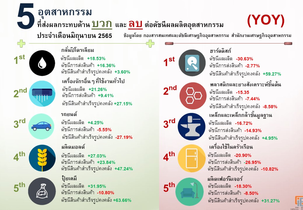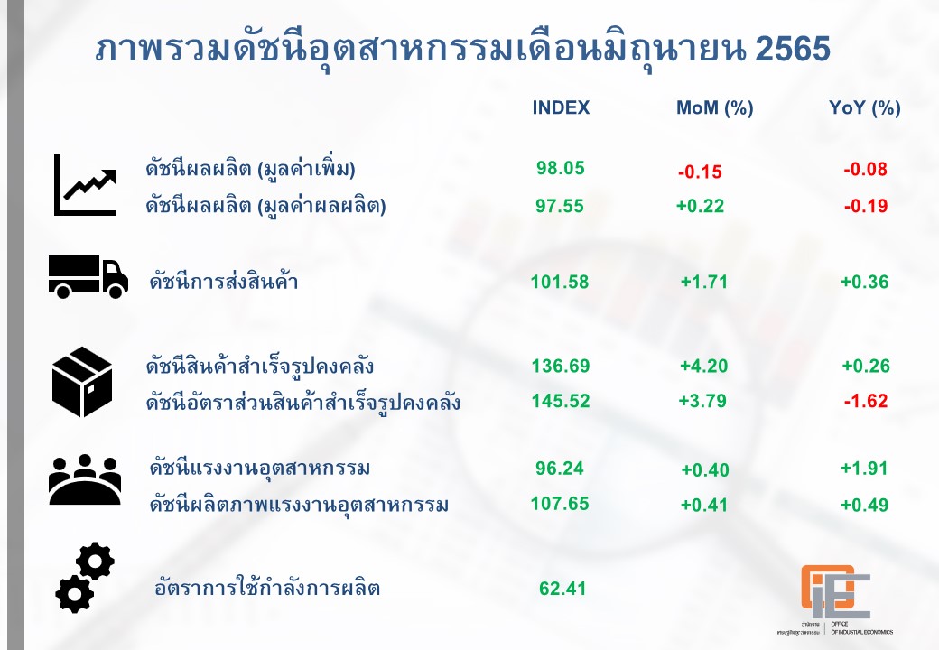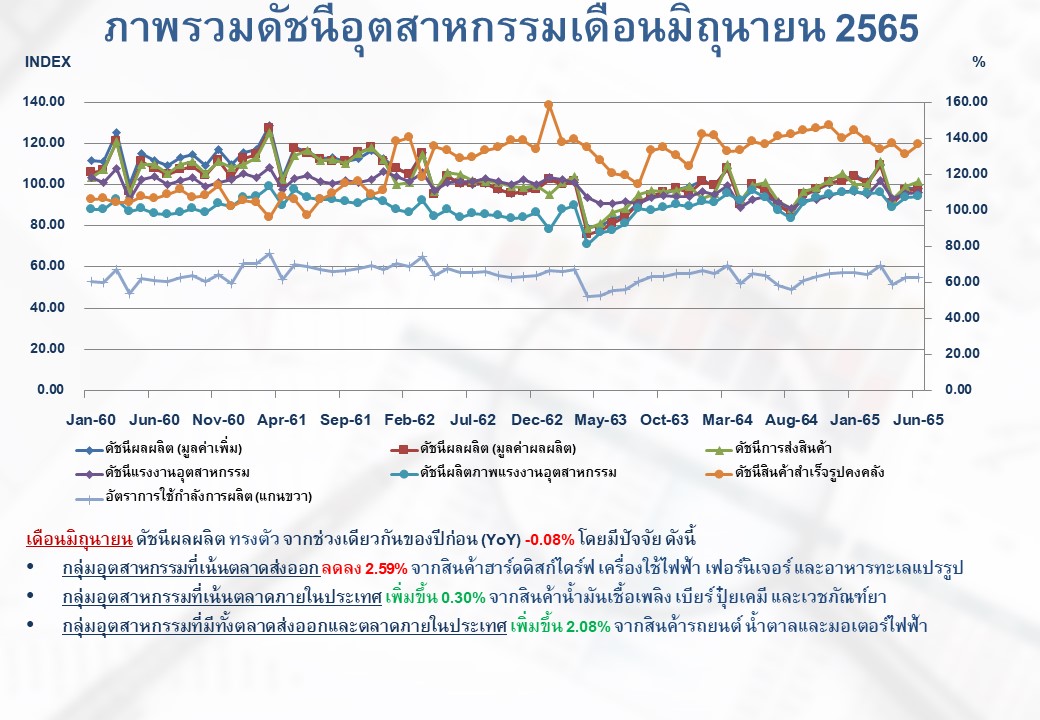 ภาพรวมดัชนีอุตสาหกรรมเดือนมิถุนายน 2565