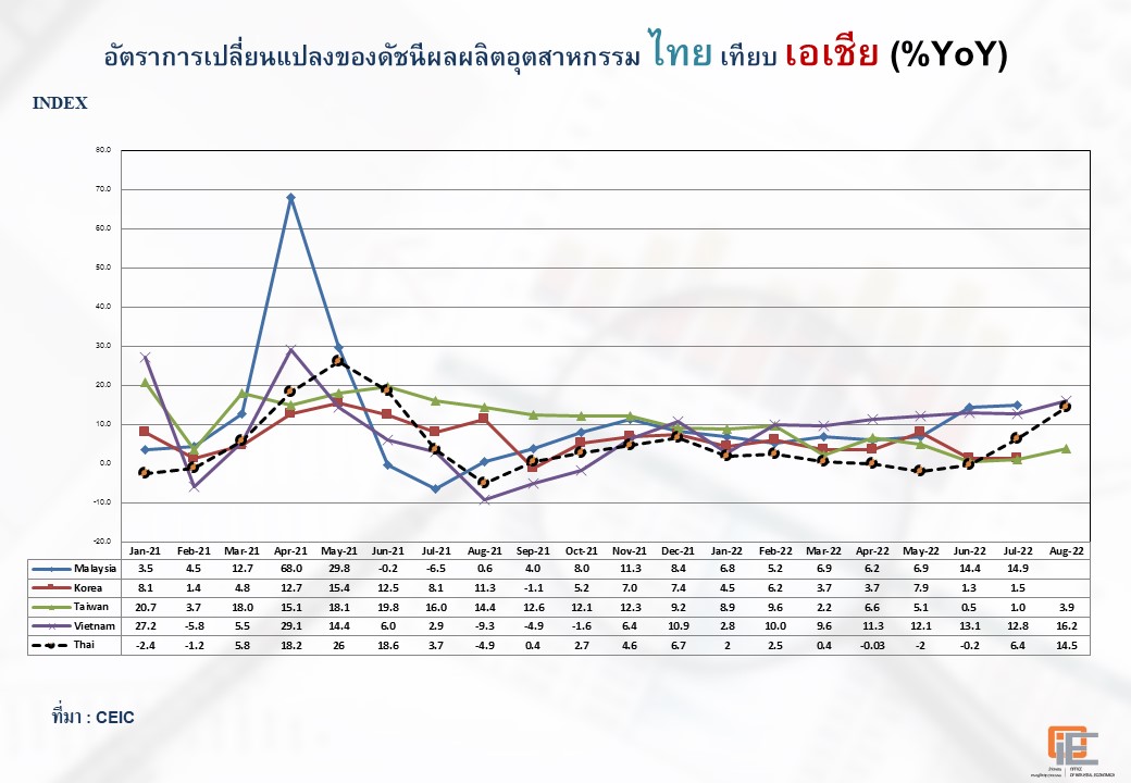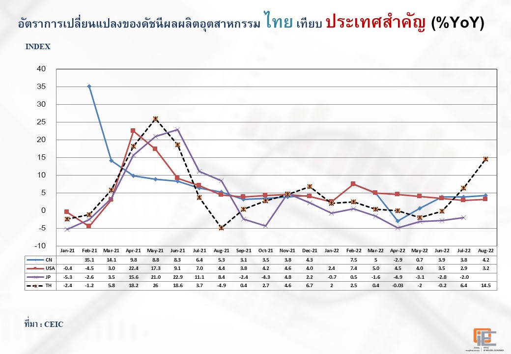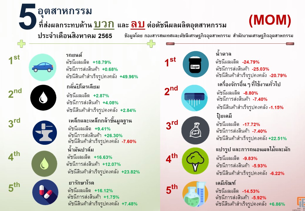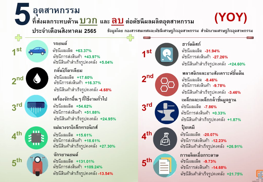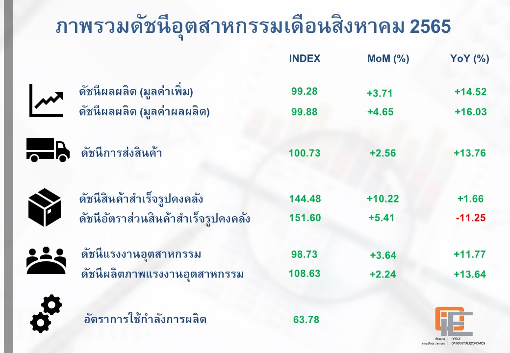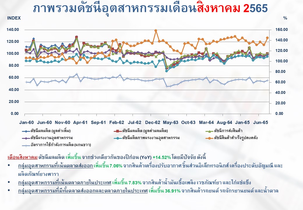 ภาพรวมดัชนีอุตสาหกรรมเดือนสิงหาคม 2565