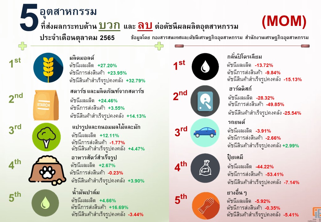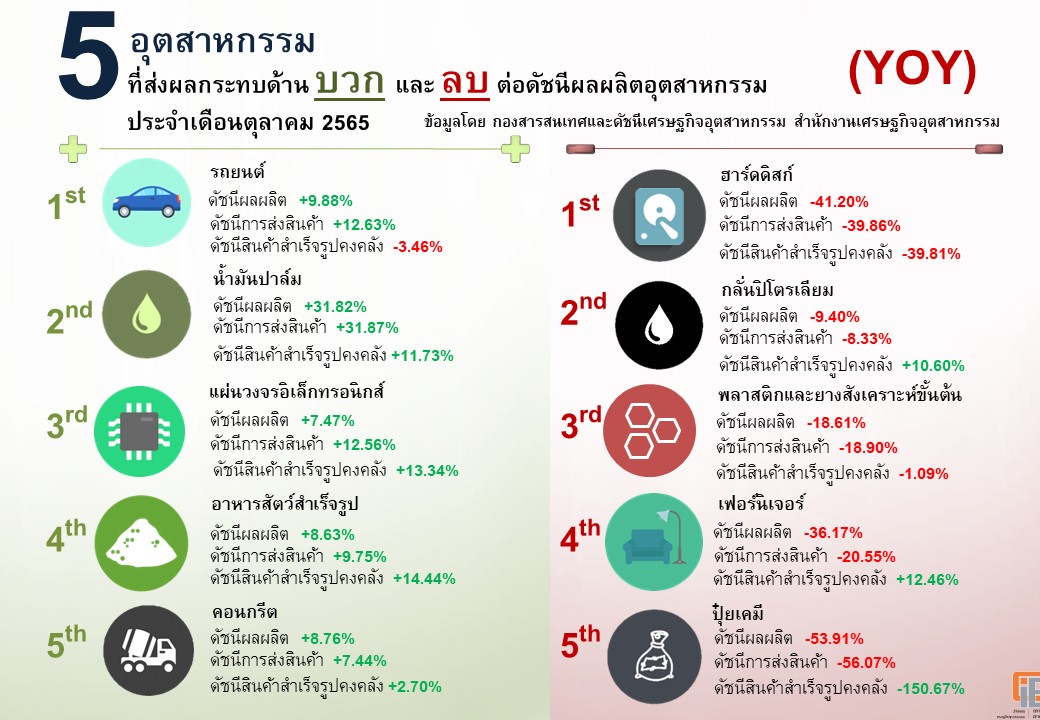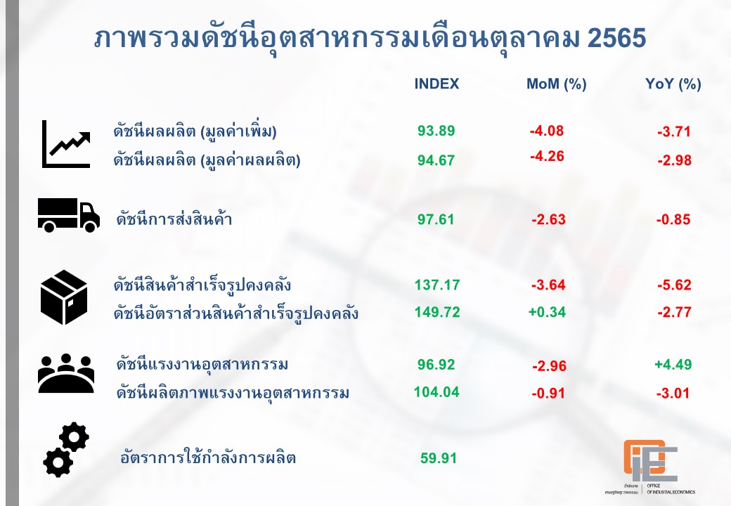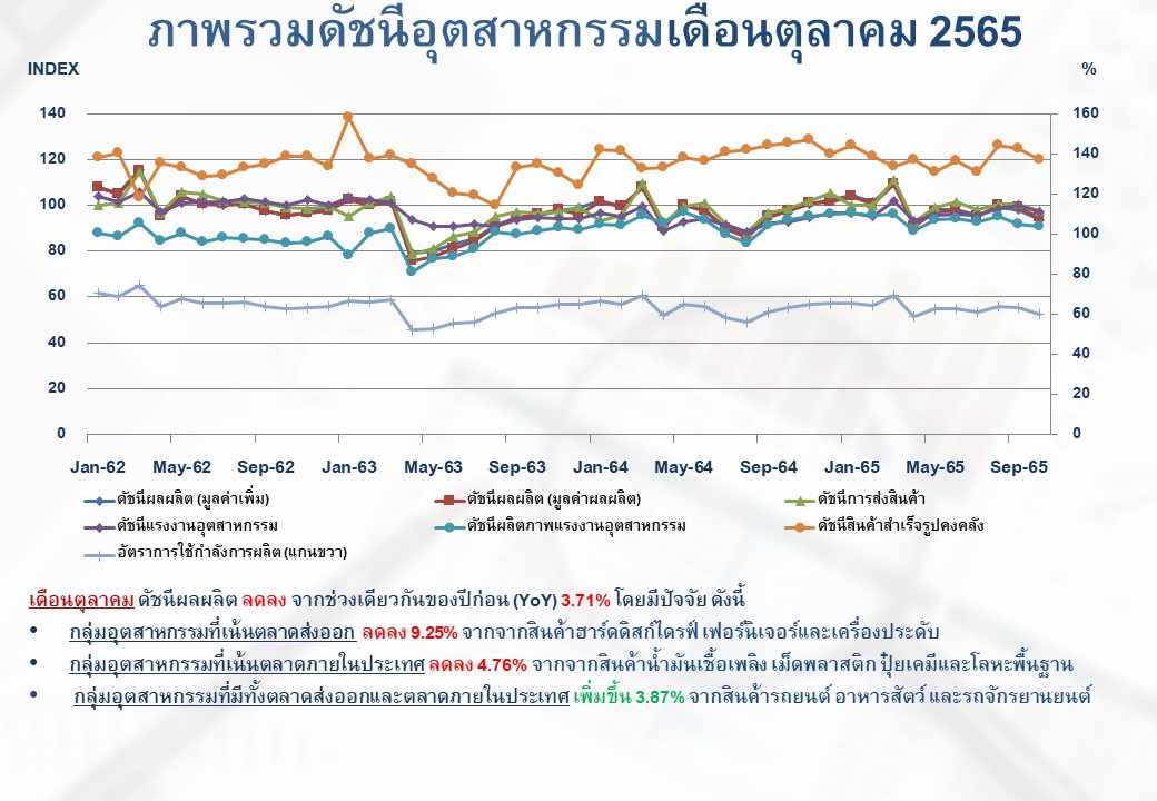 ภาพรวมดัชนีอุตสาหกรรมเดือนตุลาคม 2565