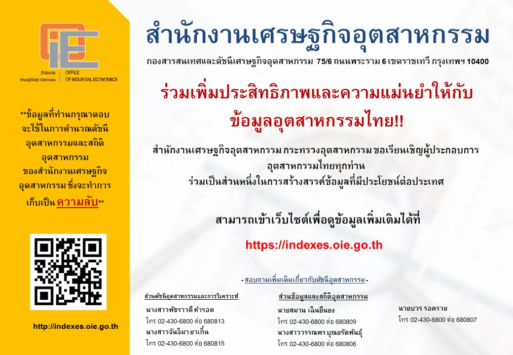 ภาพรวมดัชนีอุตสาหกรรมรายเดือน
