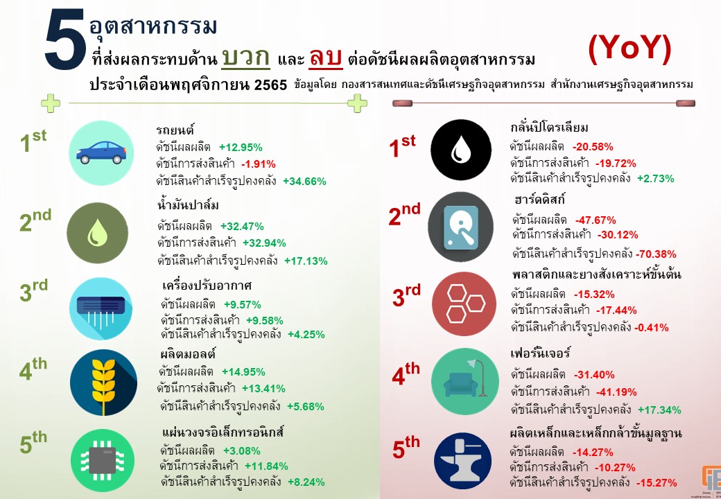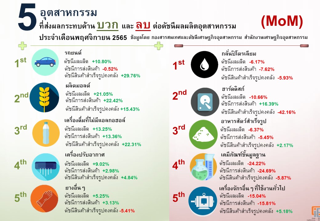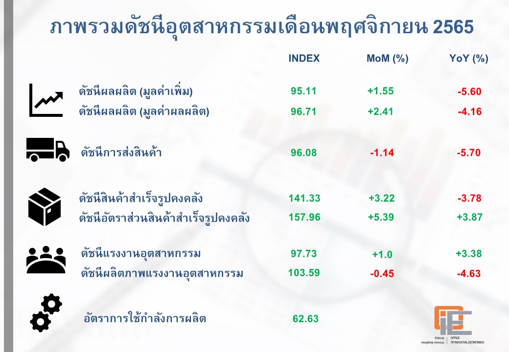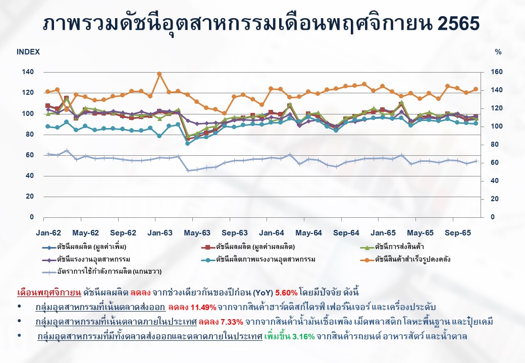 ภาพรวมดัชนีอุตสาหกรรมเดือนพฤศจิกายน 2565