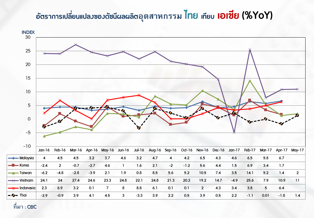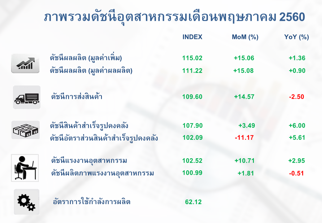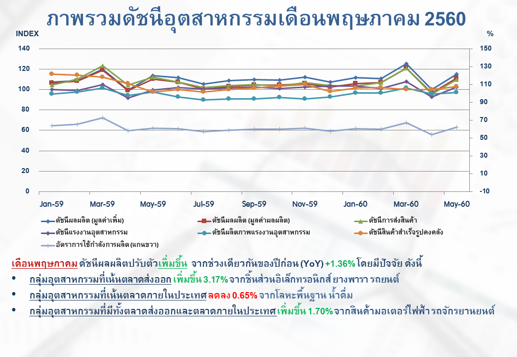 ภาพรวมดัชนีอุตสาหกรรมไทยประจำเดือนพฤษภาคม 2560