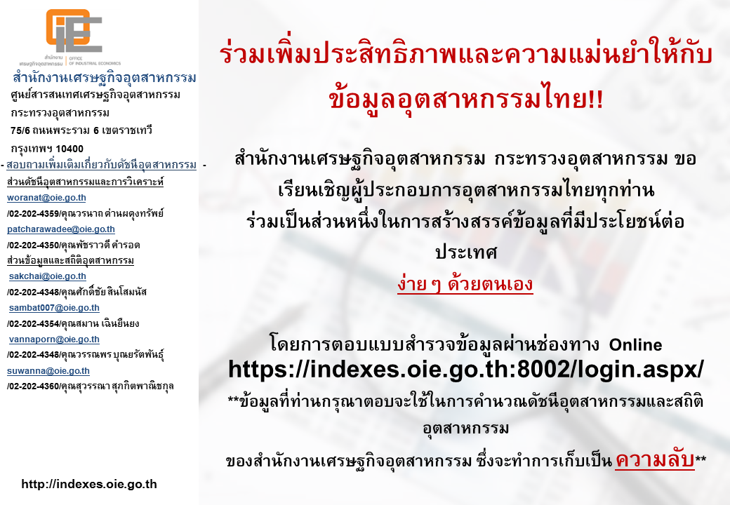 สรุปดัชนีอุตสาหกรรมรายเดือน