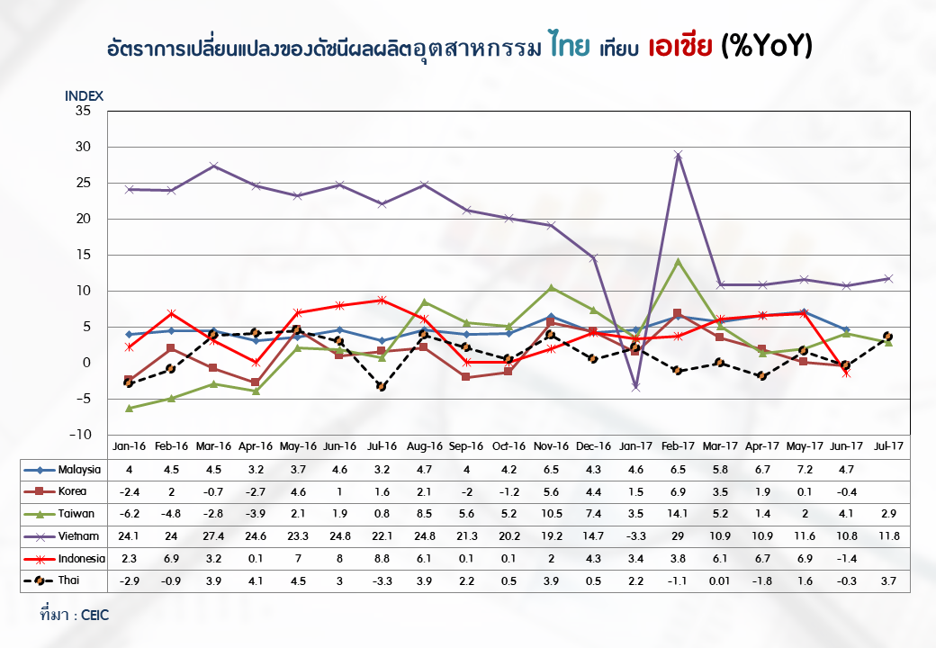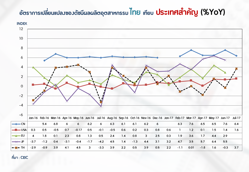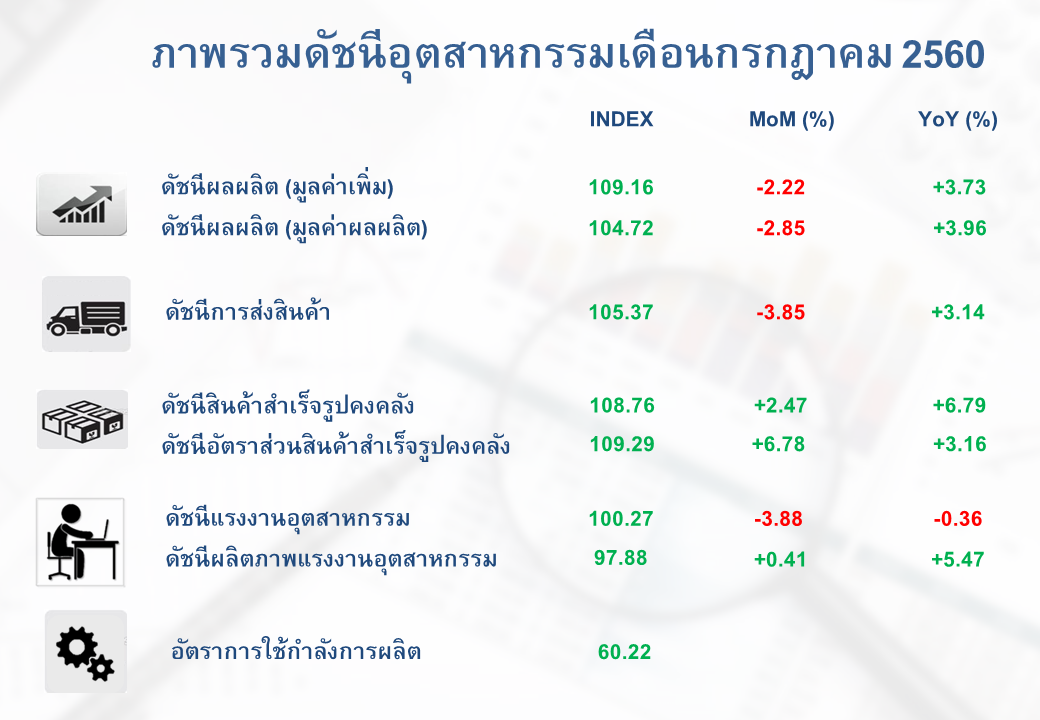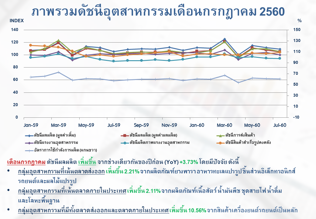 ภาพรวมดัชนีอุตสาหกรรมไทยประจำเดือนกรกฎาคม 2560