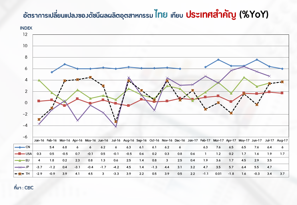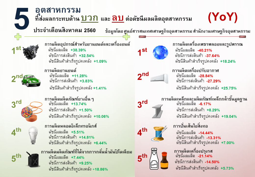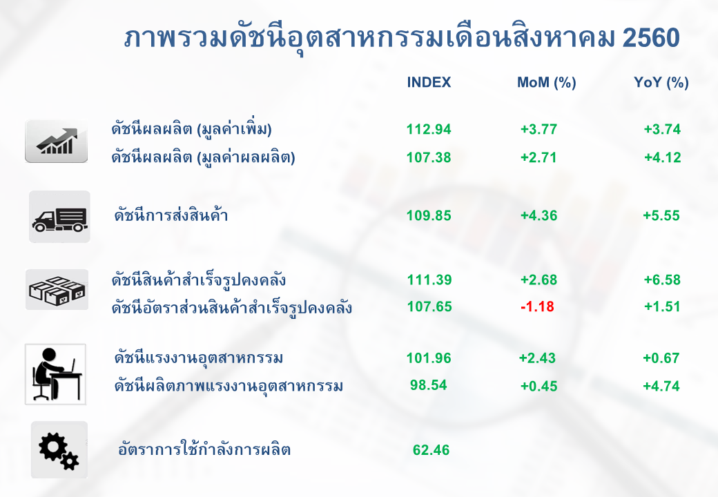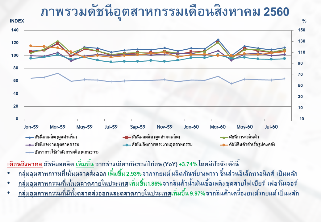 ภาพรวมดัชนีอุตสาหกรรมไทยประจำเดือนสิงหาคม 2560