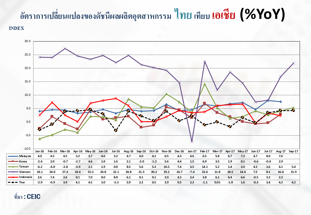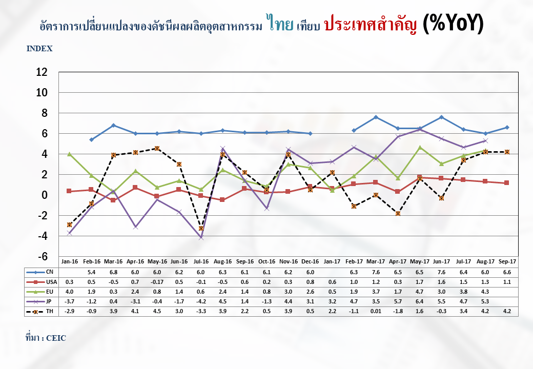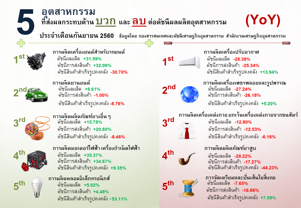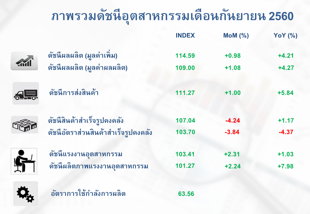 ภาพรวมดัชนีอุตสาหกรรมไทยประจำเดือนกันยายน 2560