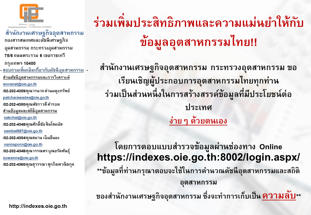 สรุปดัชนีอุตสาหกรรมรายเดือน