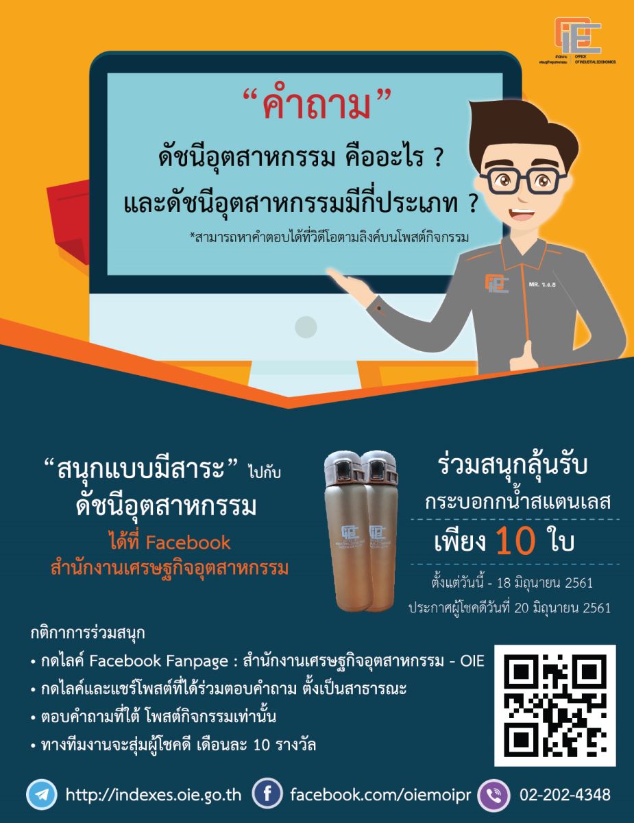 5. สามารถร่วมกิจกรรม "สนุกแบบมีสาระ" ไปกับดัชนีอุตสาหกรรม ได้แล้วตั้งแต่วันนี้ ถึงวันที่ 18 มิถุนายน2561 ประกาศผลวันที่ 20 มิถุนายน 2561