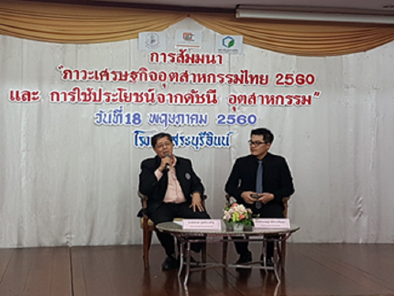 วันที่ 18 พฤษภาคม 2560 ที่ผ่านมา ณ ห้องไพลิน โรงแรมสระบุรีอินน์ จังหวัดสระบุรี โดยได้จัดกิจกรรมสัมมนาหัวข้อ “ภาวะเศรษฐกิจอุตสาหกรรมไทย 2560 และ การใช้ประโยชน์จากดัชนีอุตสาหกรรม